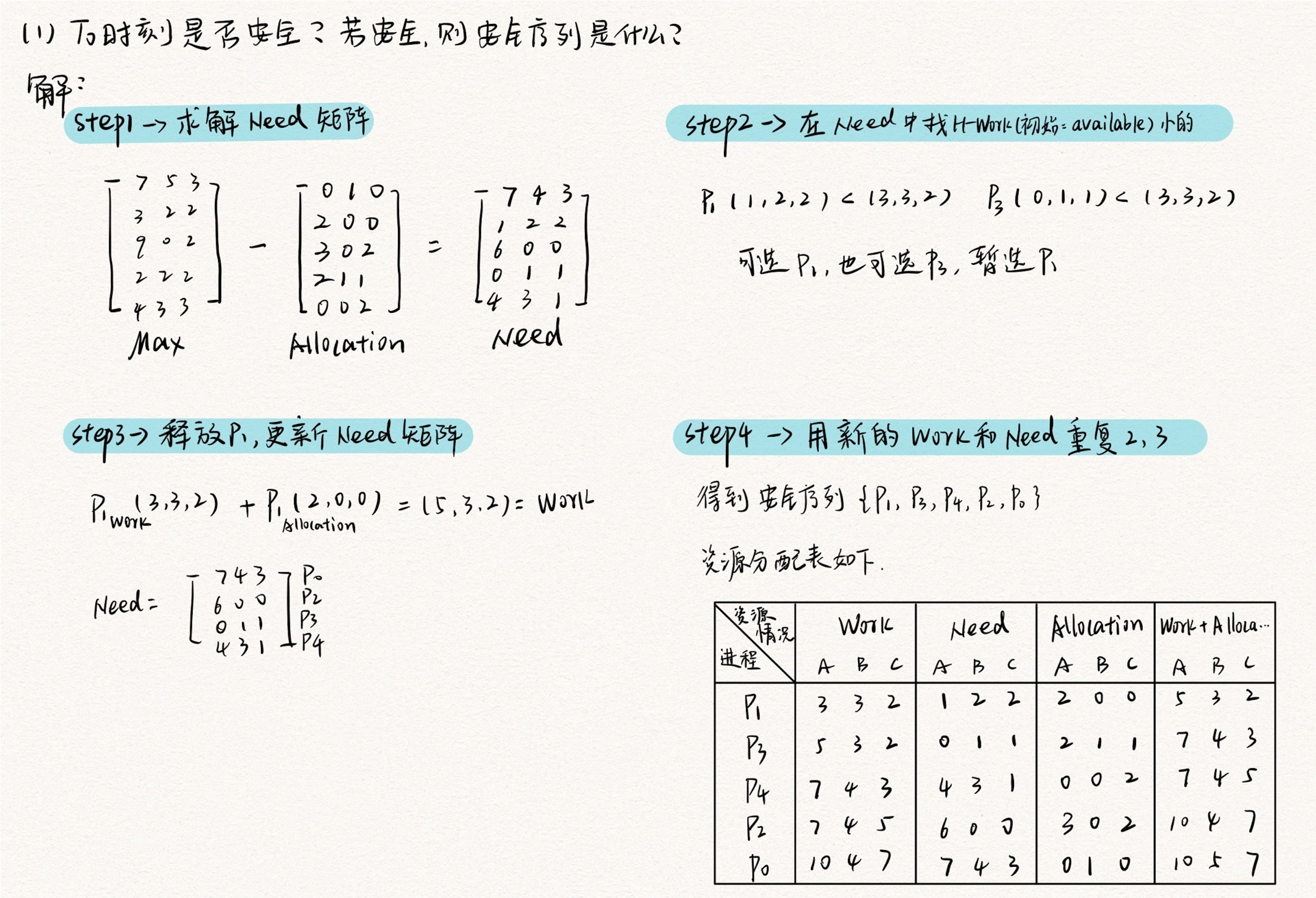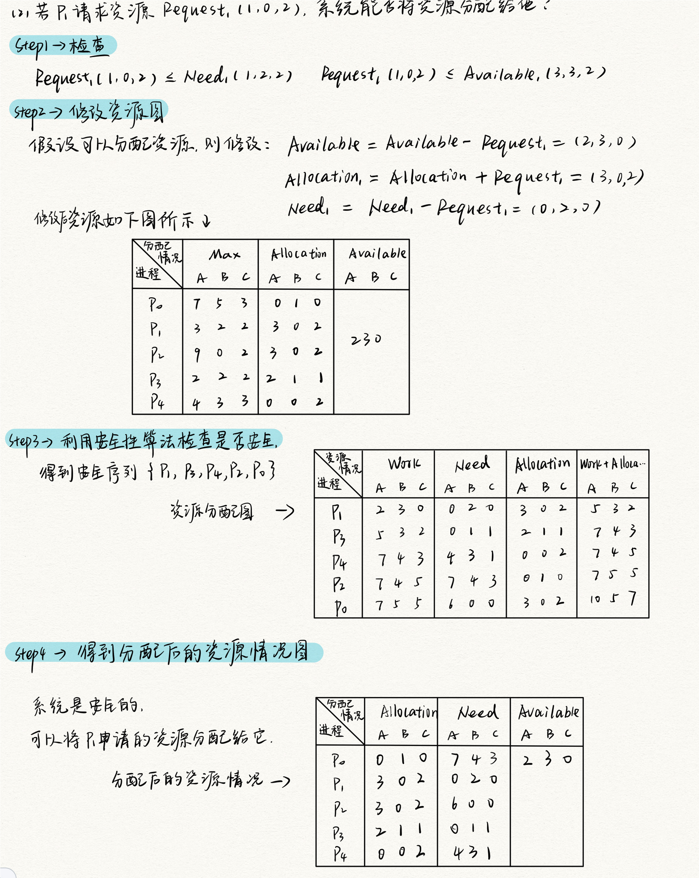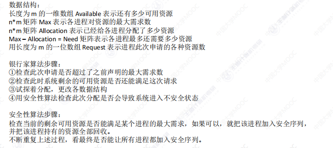 • 死锁避免:用某种方法防止系统进入不安全状态,从而避免死锁