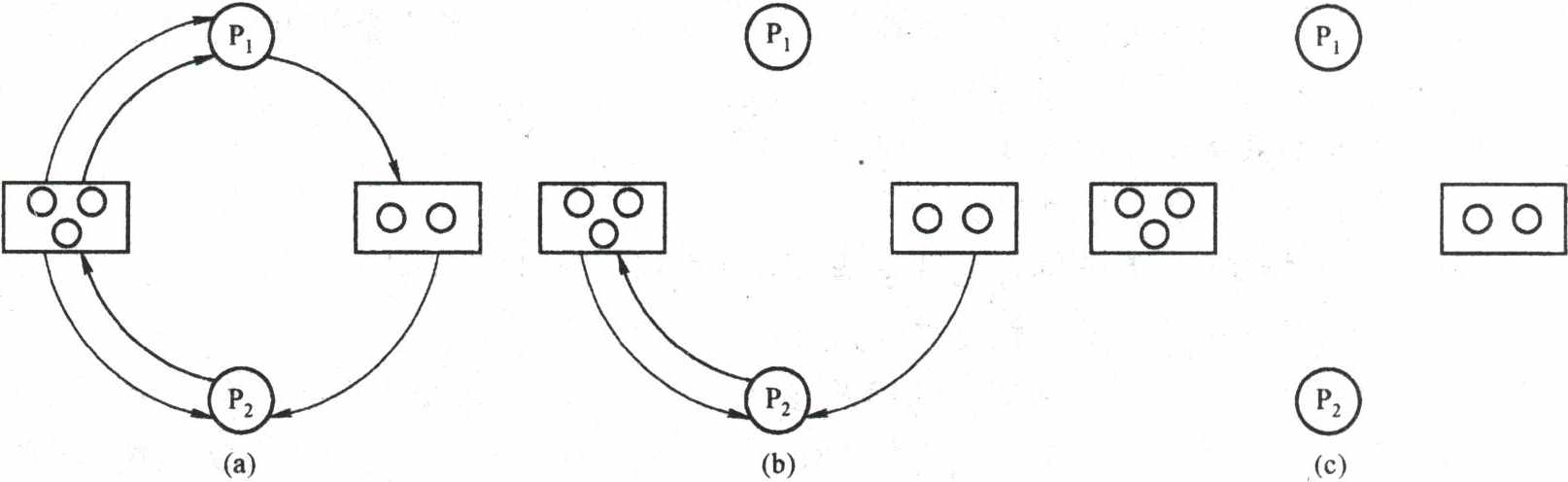 • 存在一种进程资源的循环等待链,链中的每一个进程已获得的资源同时被下一个进程所请求