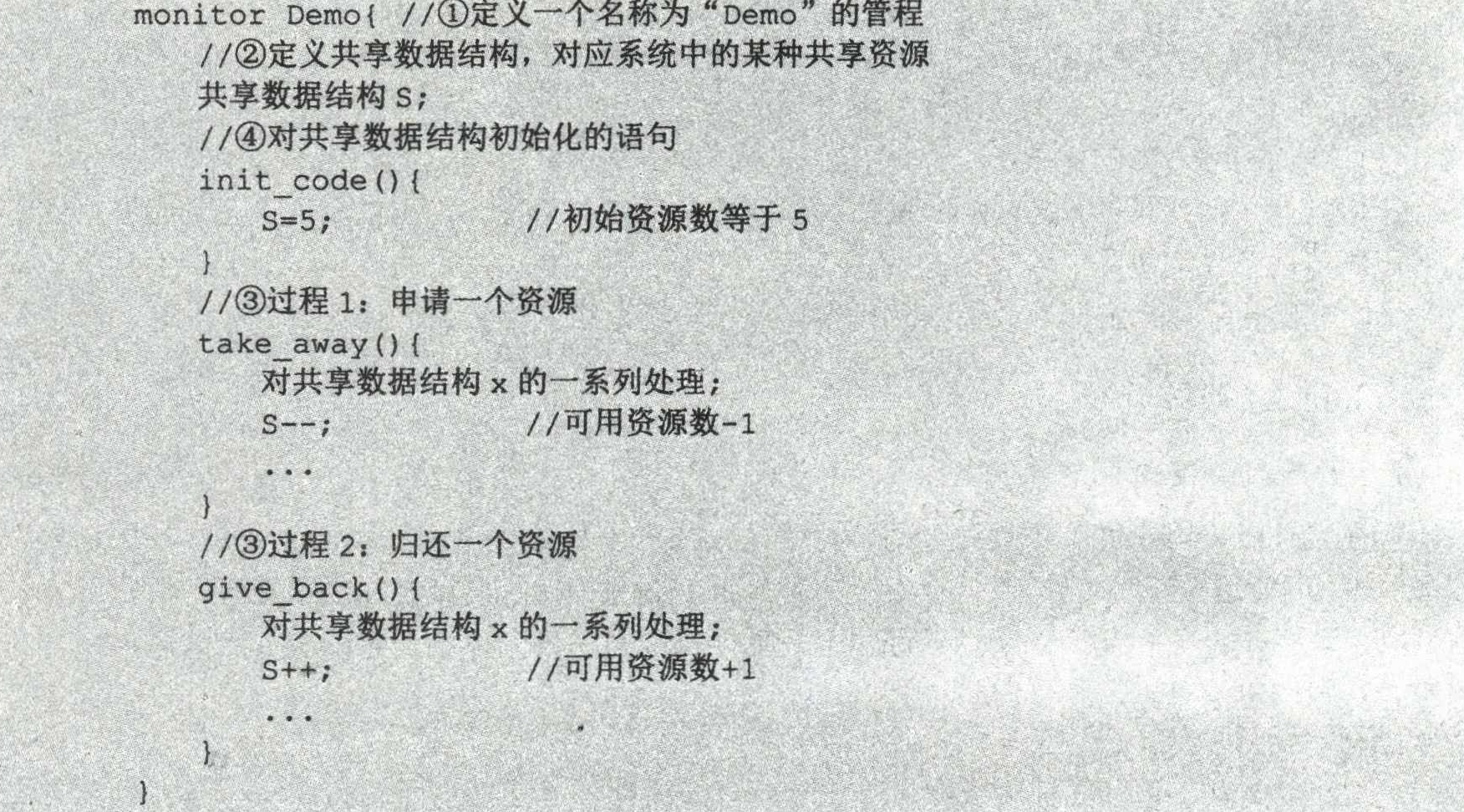 • 每次仅允许一个进程在管程内执行某个内部过程,从而实现互斥【编译器实现该特性】