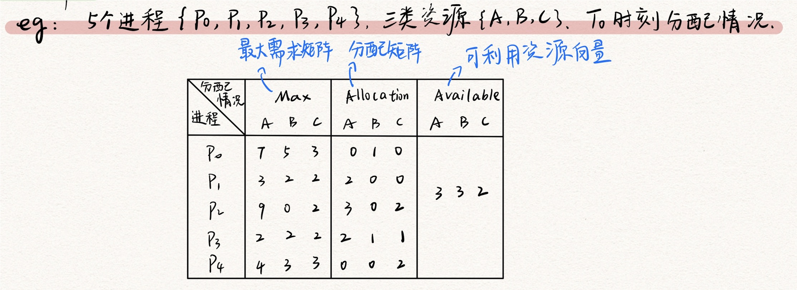 • 如果分配了资源之后,系统中找不出任何一个安全序列,系统就进入了不安全状态,这就意味着之后可能所有进程都无法顺利的执行下去【如果有进程提前归还了一些资源,那系统也有可能重新回到安全状态】
