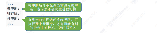 • 可以用 “关中断指令”和“开中断指令”这两个特权指令实现原子性