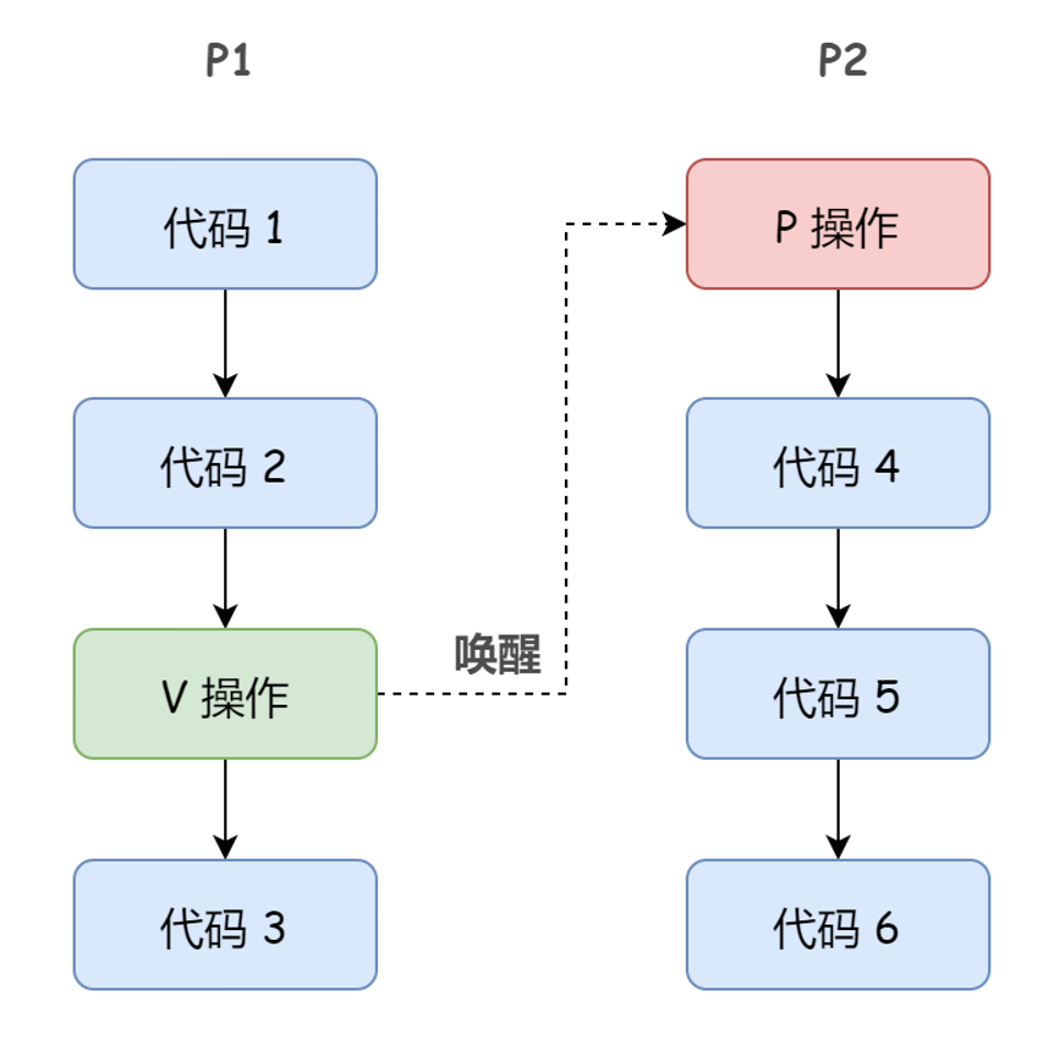 • 发送了阻塞队列等待的事件,如发送了 V 操作,信号量 +1,然后阻塞队列被唤醒到就绪队列中