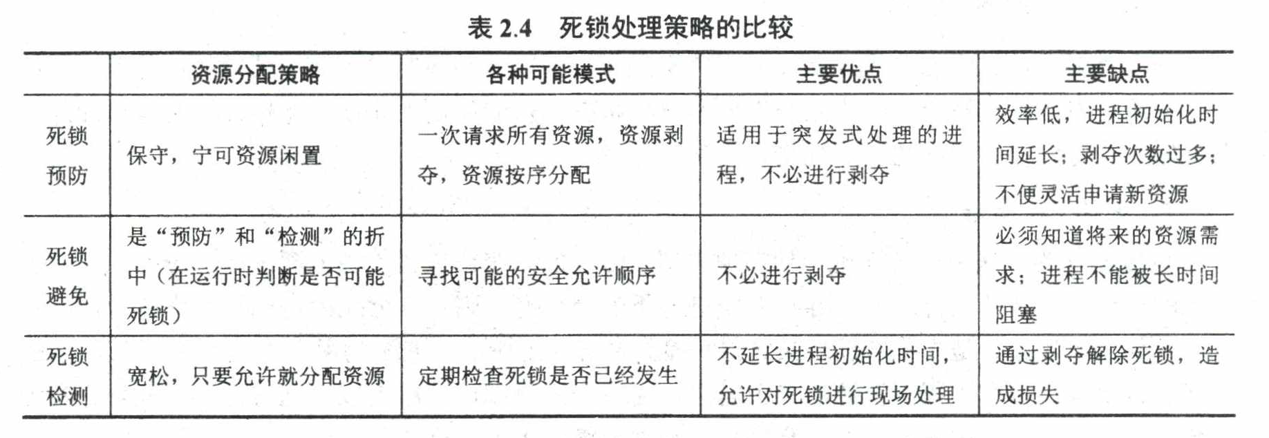 • 释放已获得的资源可能造成前一阶段工作的失效。因此这种方法一般只适用于易保存和恢复状态的资源,如 CPU