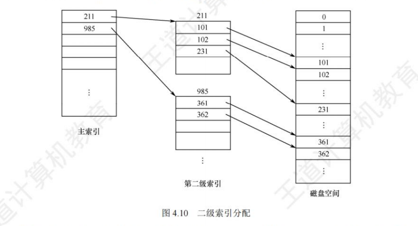- 在为一个文件分配盘块时可能要重复操作多次,效率较低
