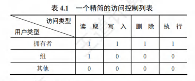 - 存取控制信息:文件主的存取权限、核准用户的存取权限以及一般用户的存取权限