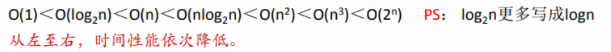 - 常用的时间复杂度大小关系: