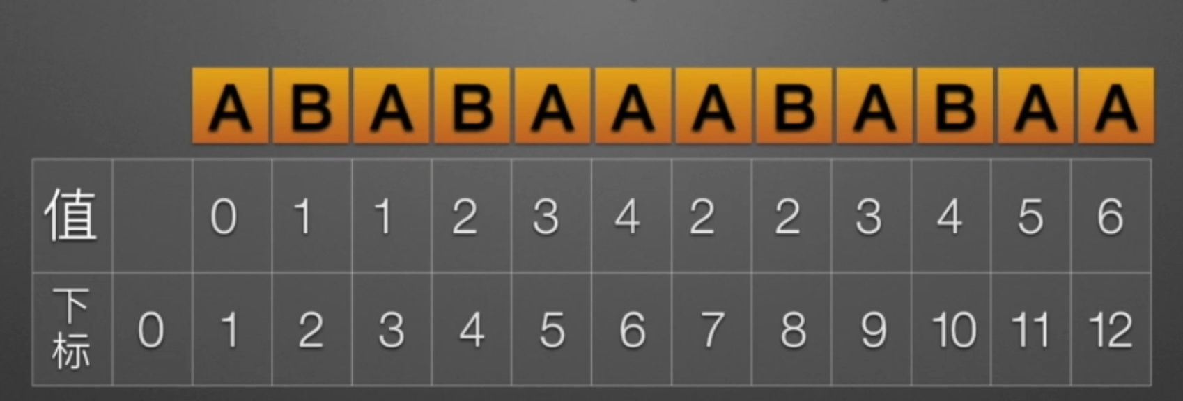对模式串从索引 0 开始的子串,计算其不超过子串长度的最大公共前后缀。