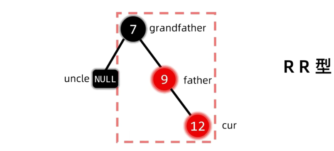 S是黑色,S的远侄(与X同侧的S的子结点)是黑色,近侄是红色- 操作:将