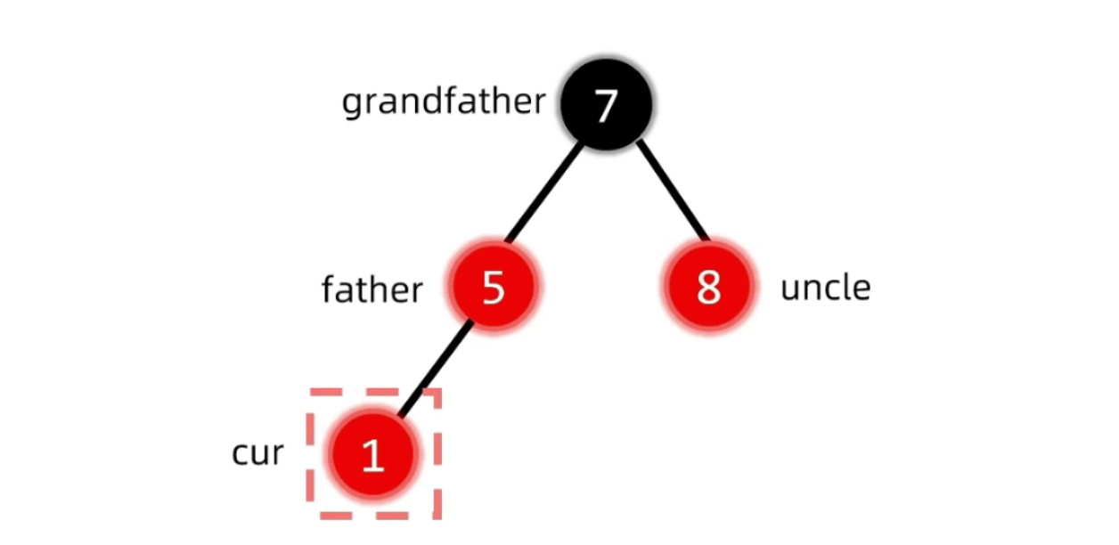 插入后的调整分为以下几种情况(设新插入结点为 N,其父结点为 P,祖父结点为 G,叔父结点为 U):