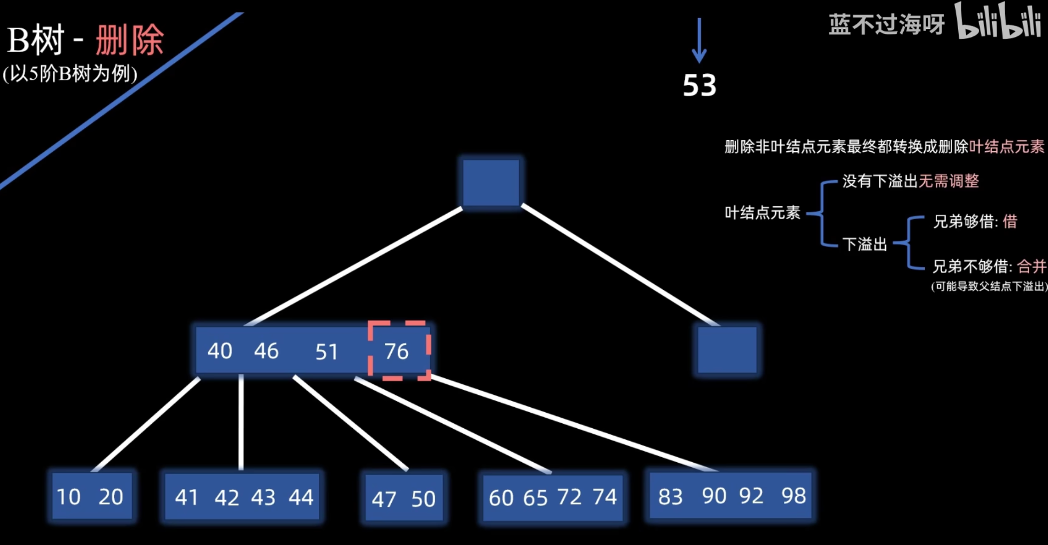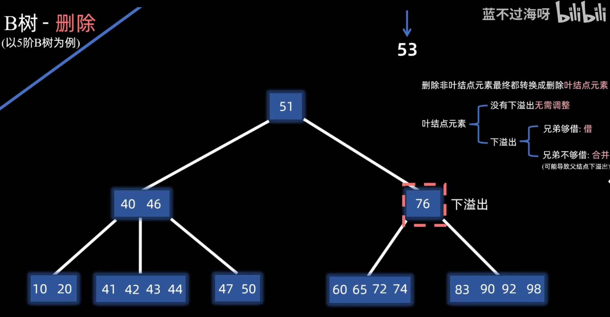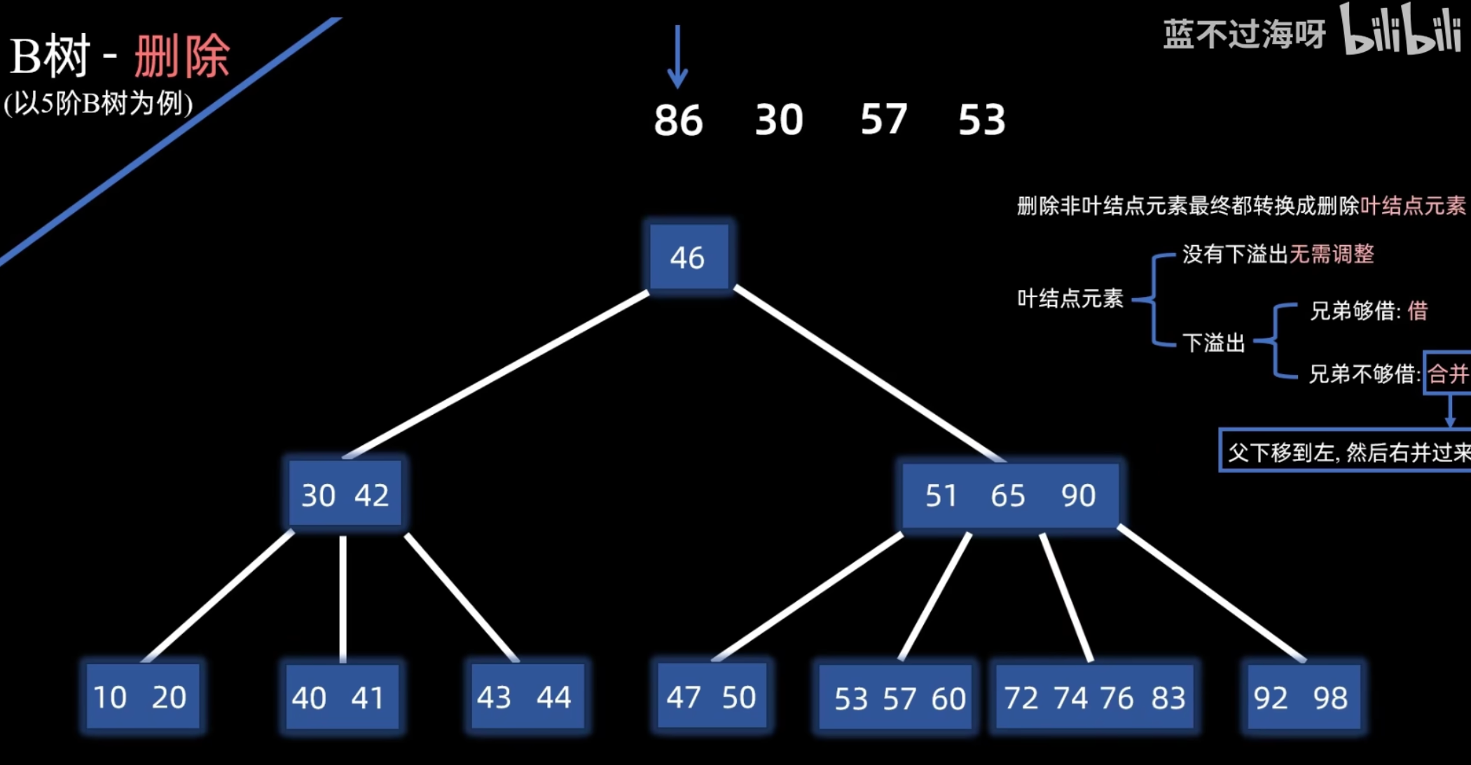 删除操作比插入复杂,因为它可能需要合并 (Merge)借用 (Borrow) 关键字来维持 B 树的性质。
