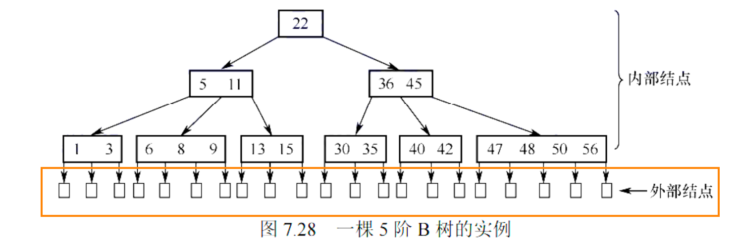 • 最底层(叶子结点层,也可以理解为指向外部结点的指针层)的指针总数等于 B 树中关键字总数 加 1,即