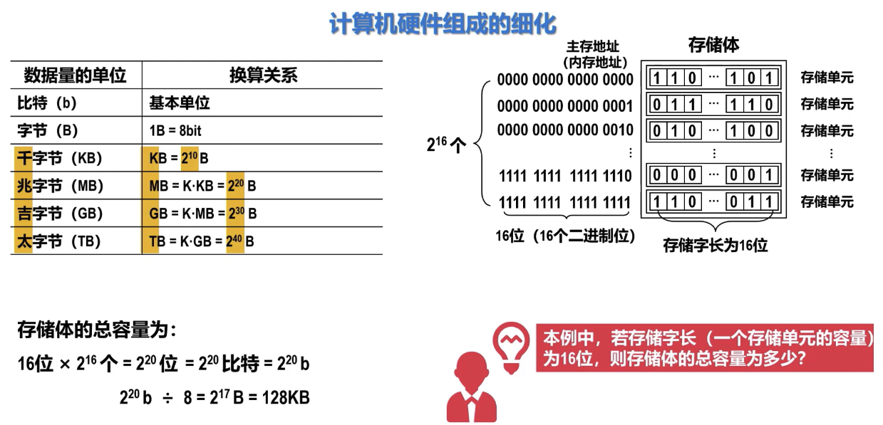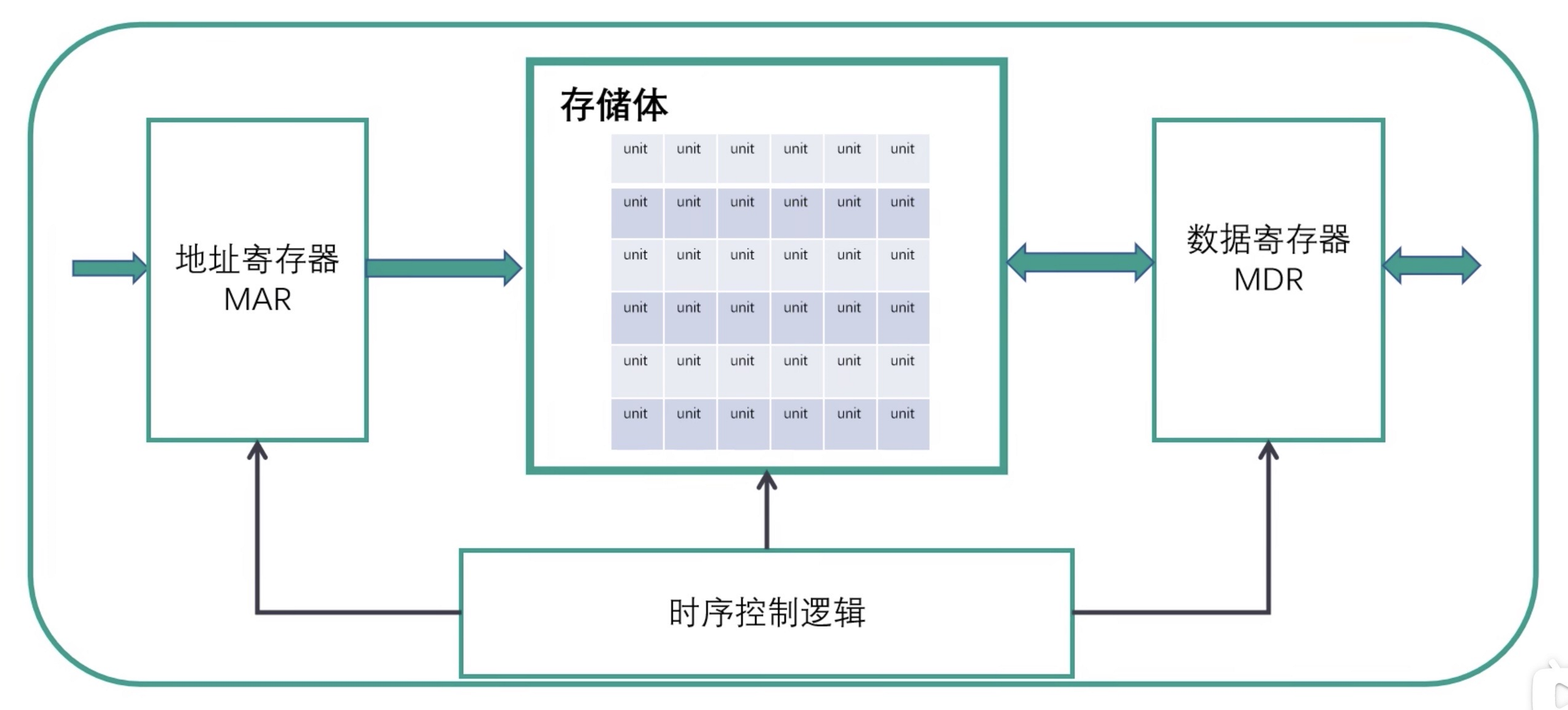 - 存储体:由大量存储单元组成,是实际存放数据和指令的物理介质。