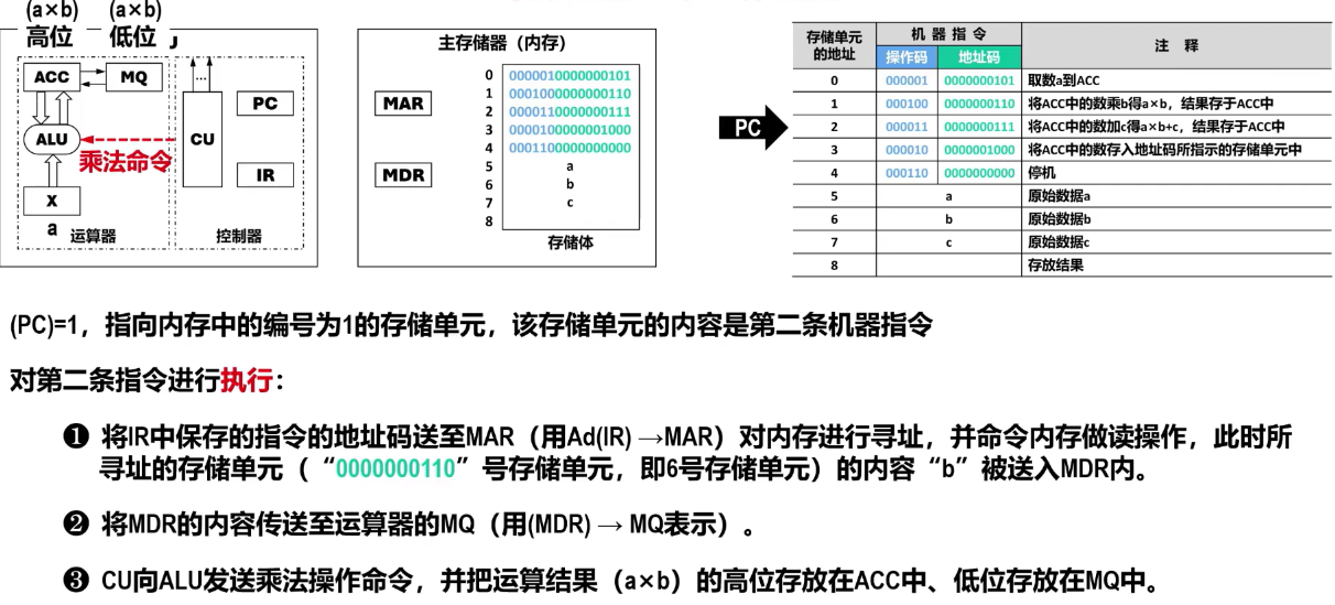 (ACC) * (MQ) -> ACC || MQ # 将累加器中的被乘数与MQ中的乘数相乘,乘积高位存入ACC,低位存入MQ