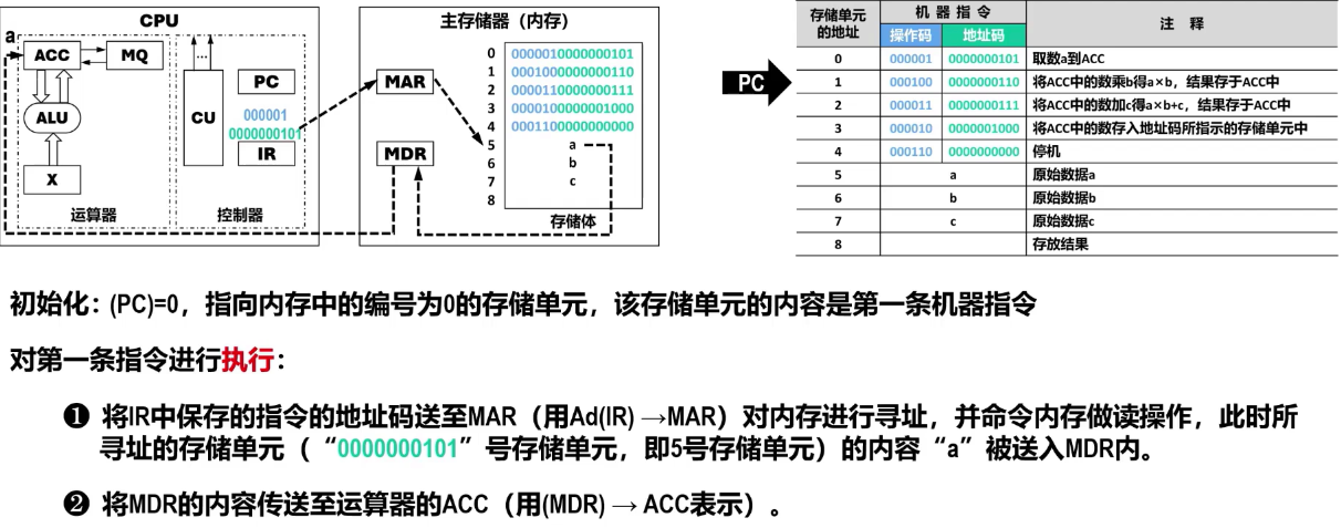 执行 (Execute Instruction):Ad(IR)→MAR→M→MDR→ACC