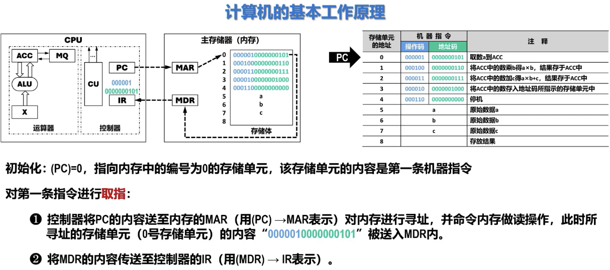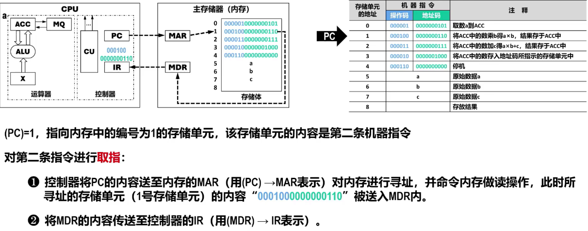 - 同时,PC 中的值自动修改(通常是加 1 个指令字长),指向下一条即将执行的指令在主存中的地址。