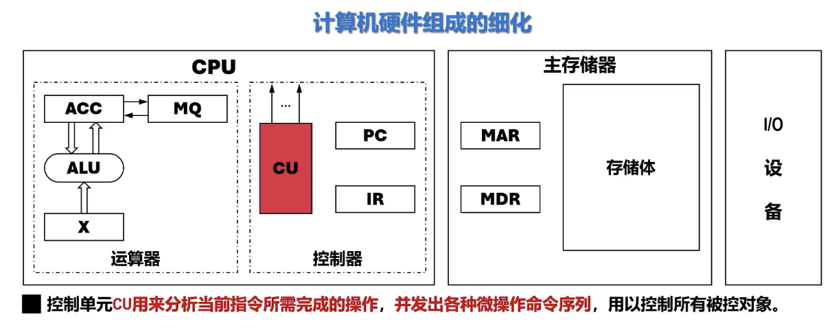- CU (控制单元) 对 IR 中存放的指令的操作码进行译码,识别指令的类型和所需执行的操作。