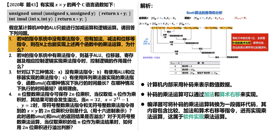 - 双符号位:计算 时,被乘数 、乘数 以及中间结果(部分积)都需采用双符号位表示,以便在运算过程中判断溢出和确定最终结果的符号。
