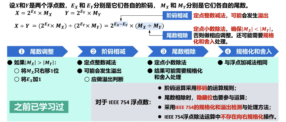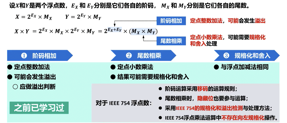 • 隐藏位(即规格化浮点数尾数整数部分的隐含 1)要参与尾数运算。在运算前,隐含的 1 需要显式地补上,成为 1.xxxx 形式。