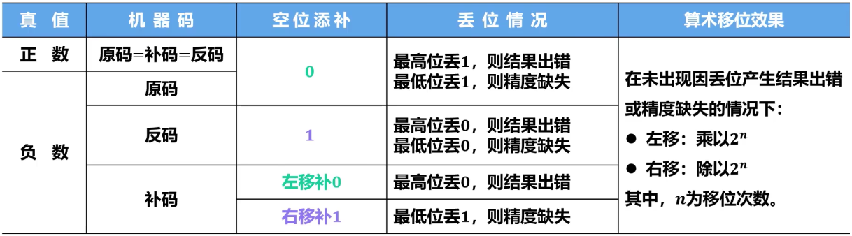 • 补码与原码相同,因此其算术移位规则也与原码正数的算术移位相同 。