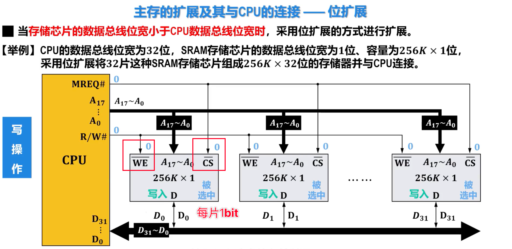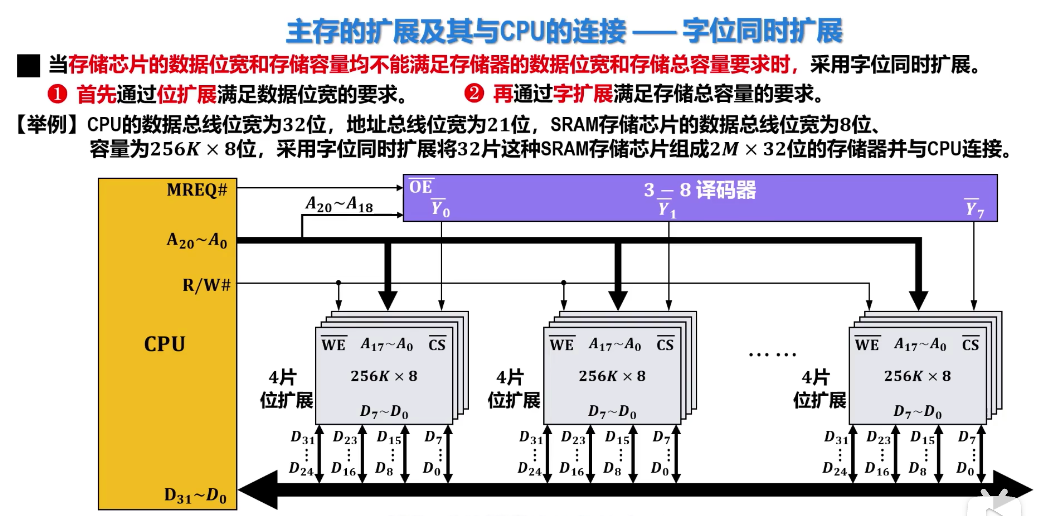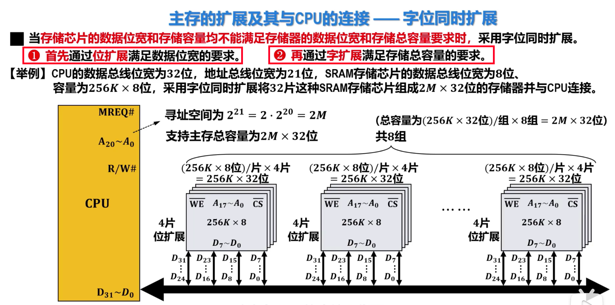 - 所有模块一次并行读 / 写的总位数正好等于数据总线位数