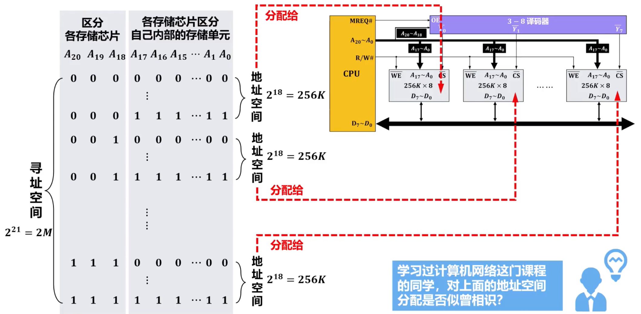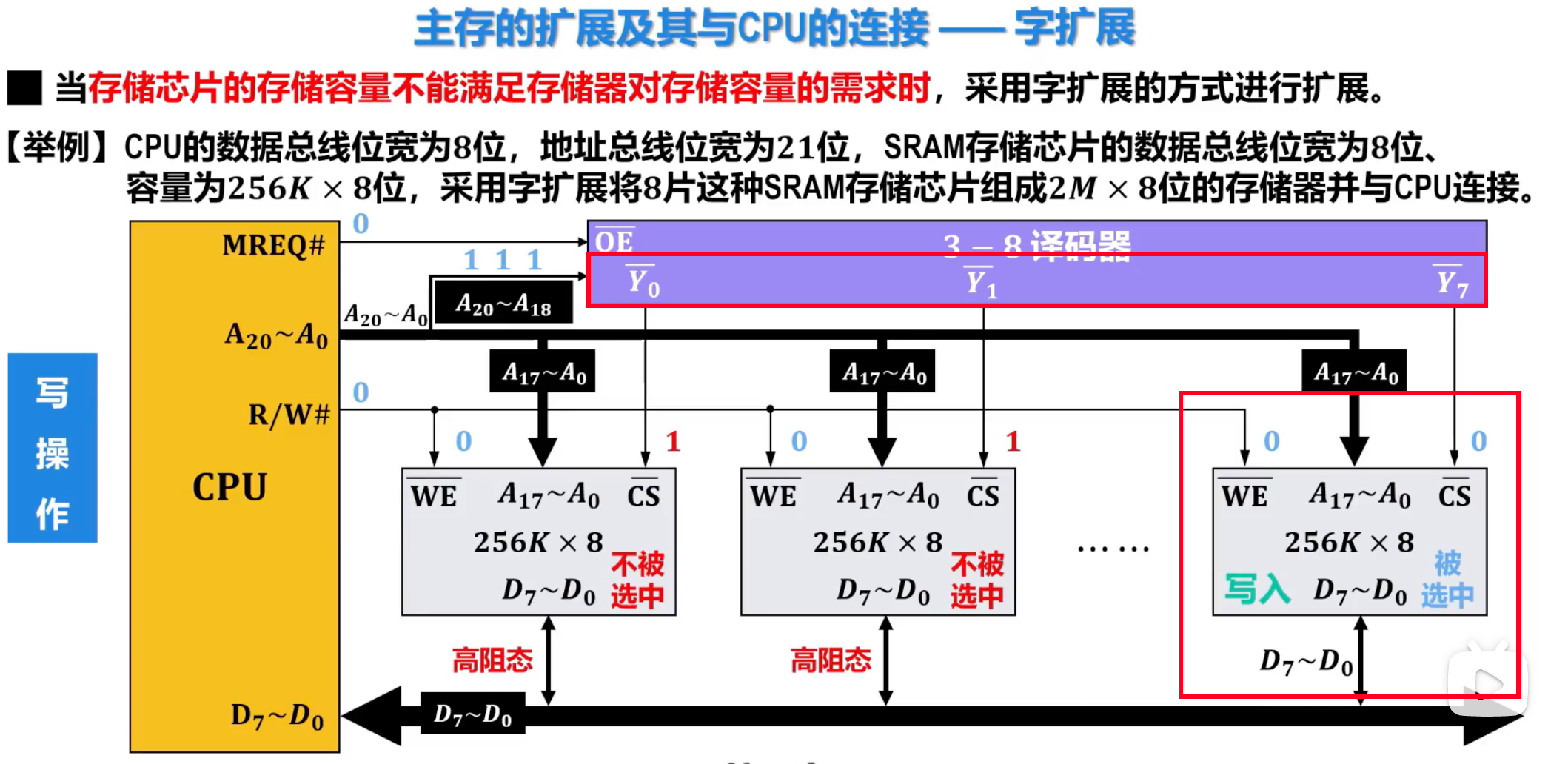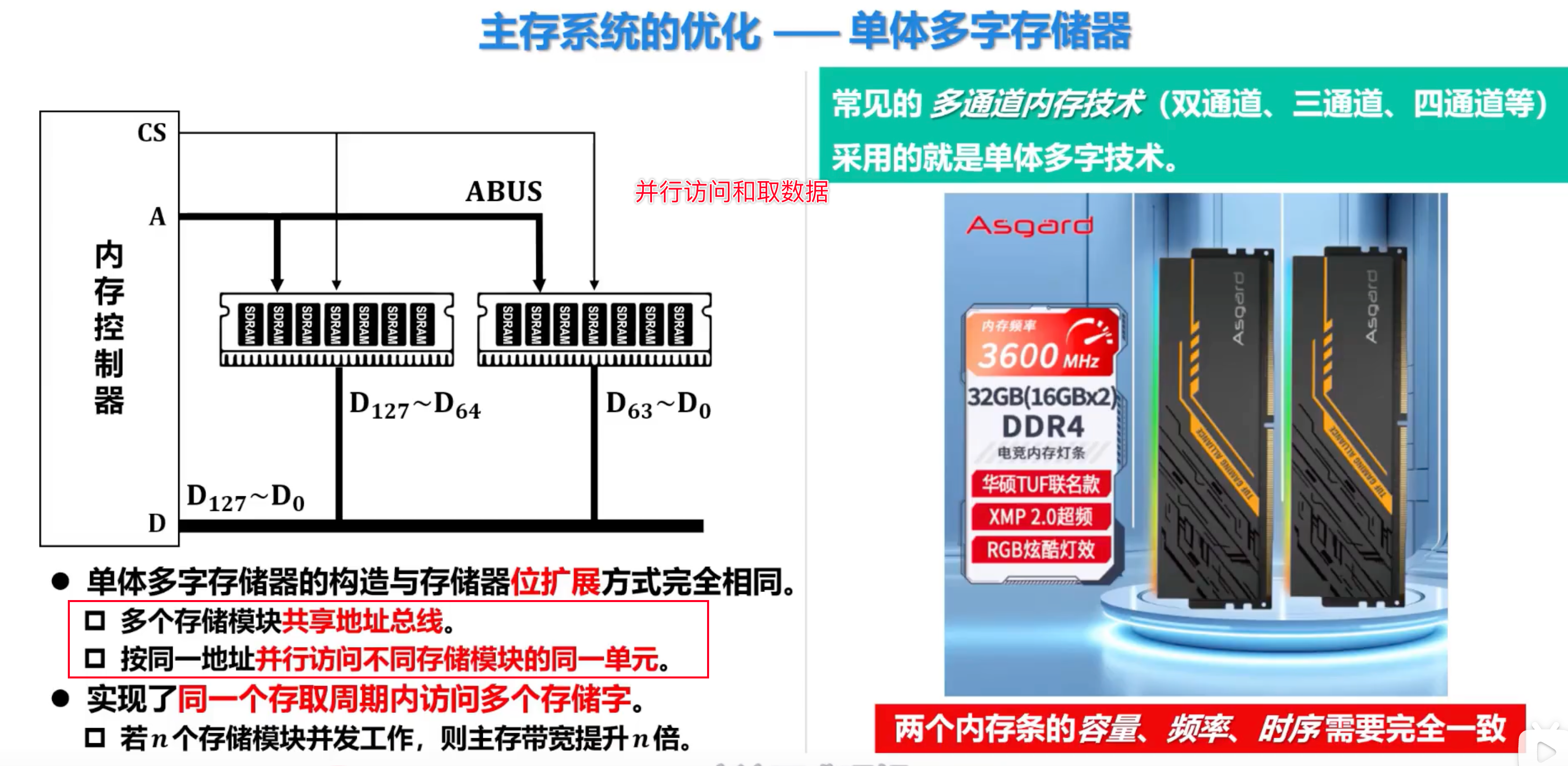 - 所有模块一次并行读 / 写的总位数正好等于数据总线位数