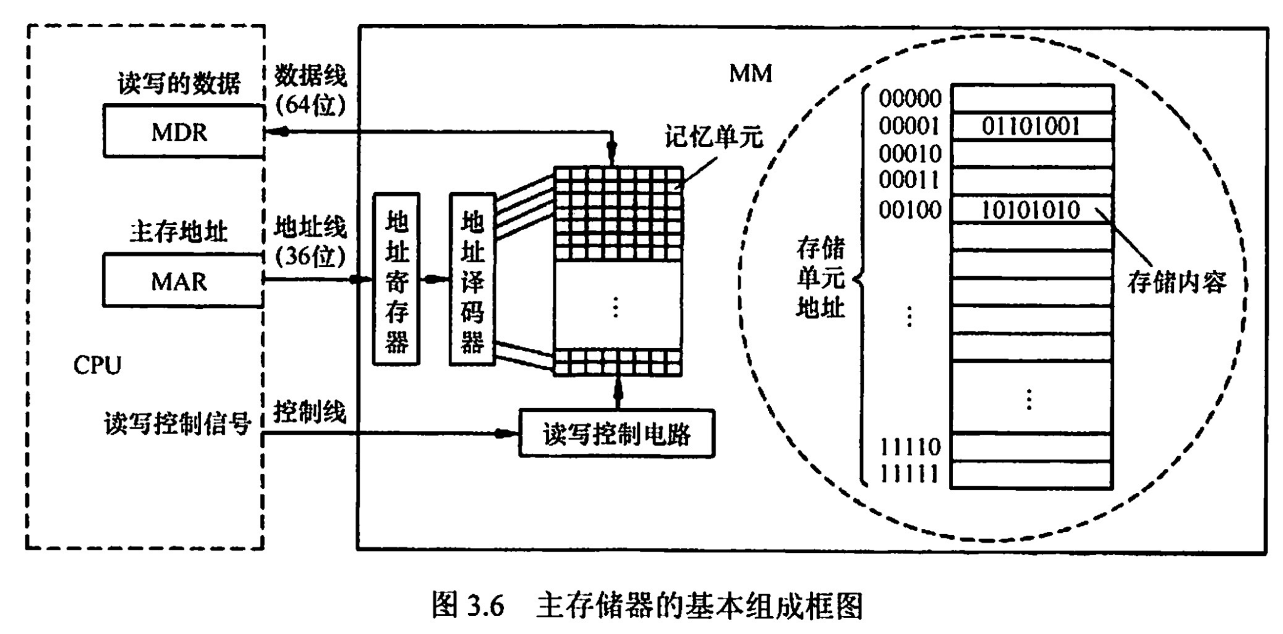 - 主存储器通过数据总线、地址总线和控制总线与 CPU 连接