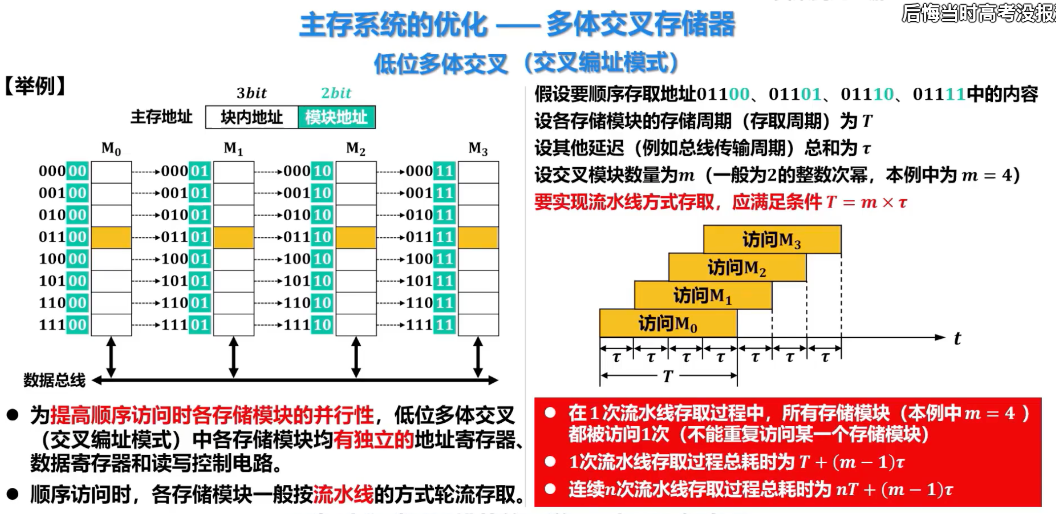 - 每隔 1/m 个存取周期轮流启动各模块,则每隔 1/m 个存取周期就可读出或写入一个数据,存取速度提高 m 倍