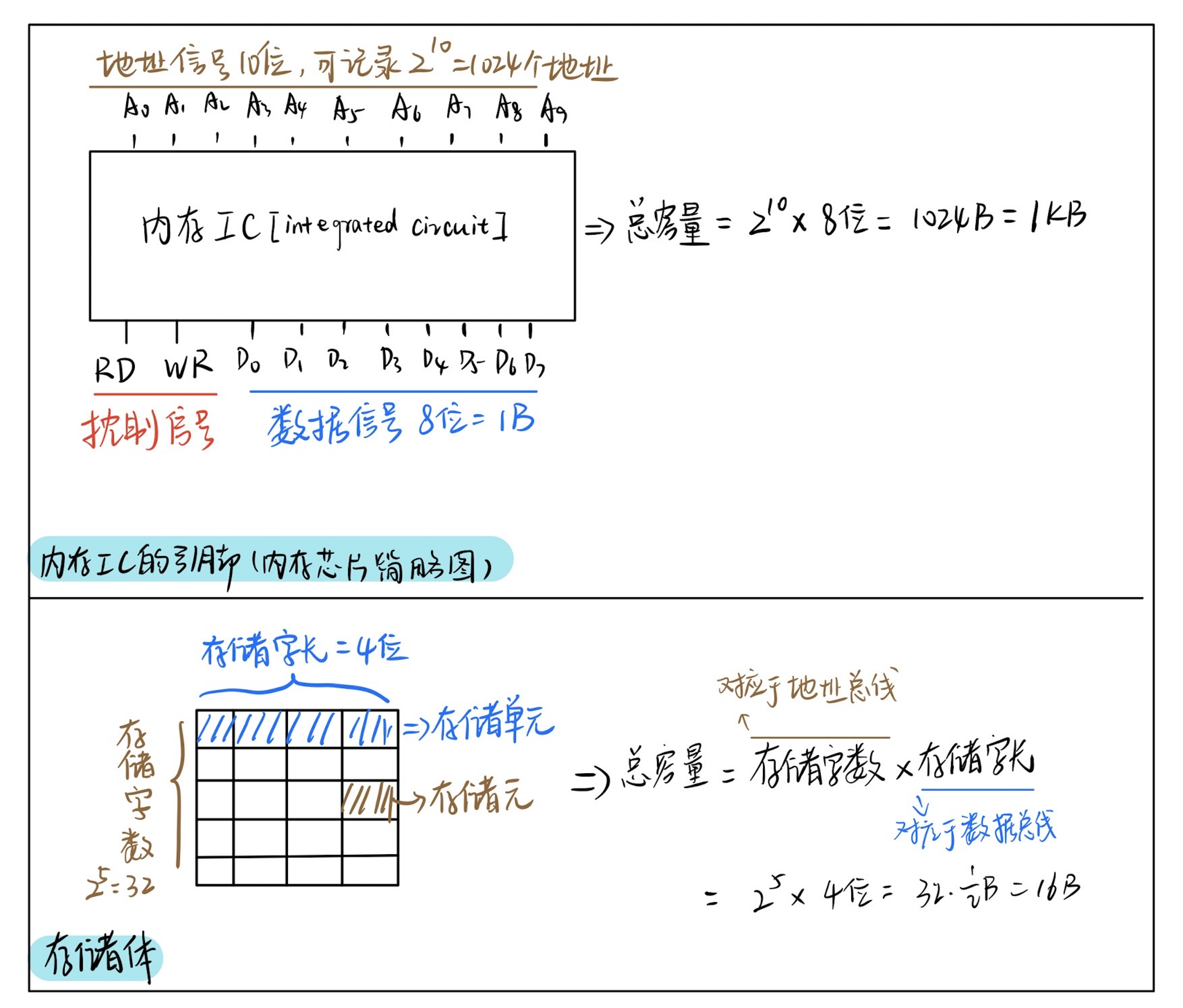 - 双译码结构:行、列地址译码,将完整的存储单元地址拆分为行地址和列地址两部分,分别送入行译码器和列译码器进行译码,共同确定一个存储单元。
