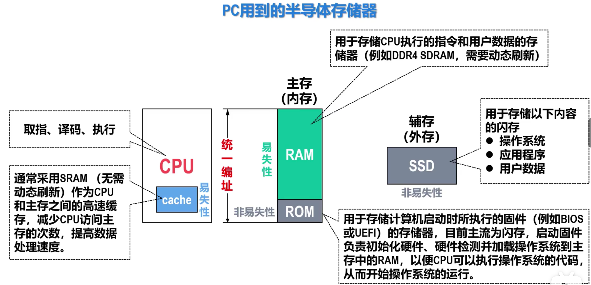 | 典型应用 | CPU 高速缓存(Cache)、寄存器文件 | 计算机主存储器(内存) |