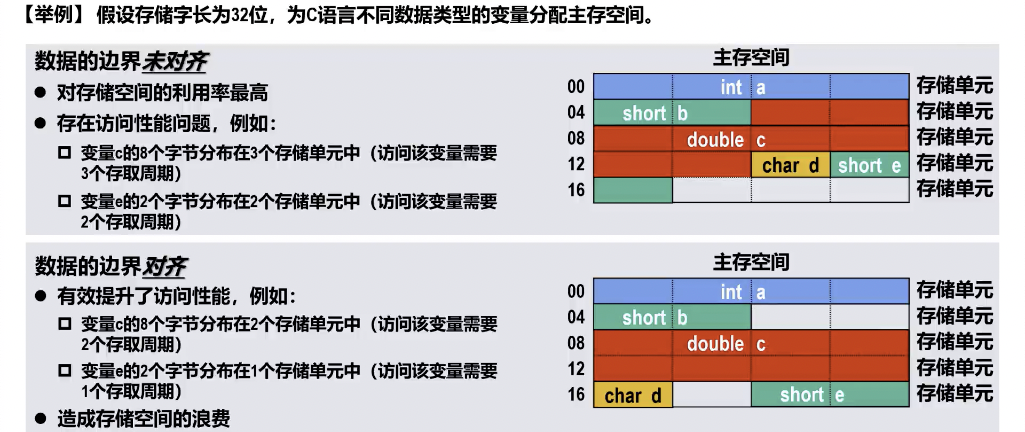 int或float类型。 - 对齐规则:其起始地址必须是 4 的倍数。这意味着,单字的地址的二进制表示的最低 2 位必须是 00。