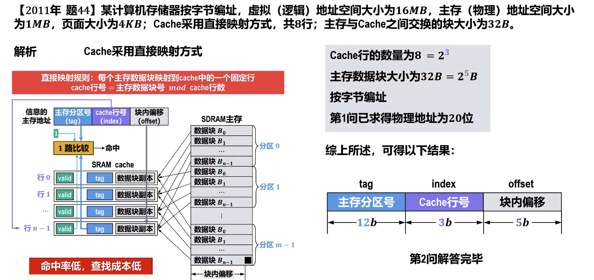 | 5 | 缺失 | 缺失 | 缺失 | 可能 | 最差情况。发生缺页中断,需从磁盘调页,之后重新访存。数据自然也不在 Cache。 |