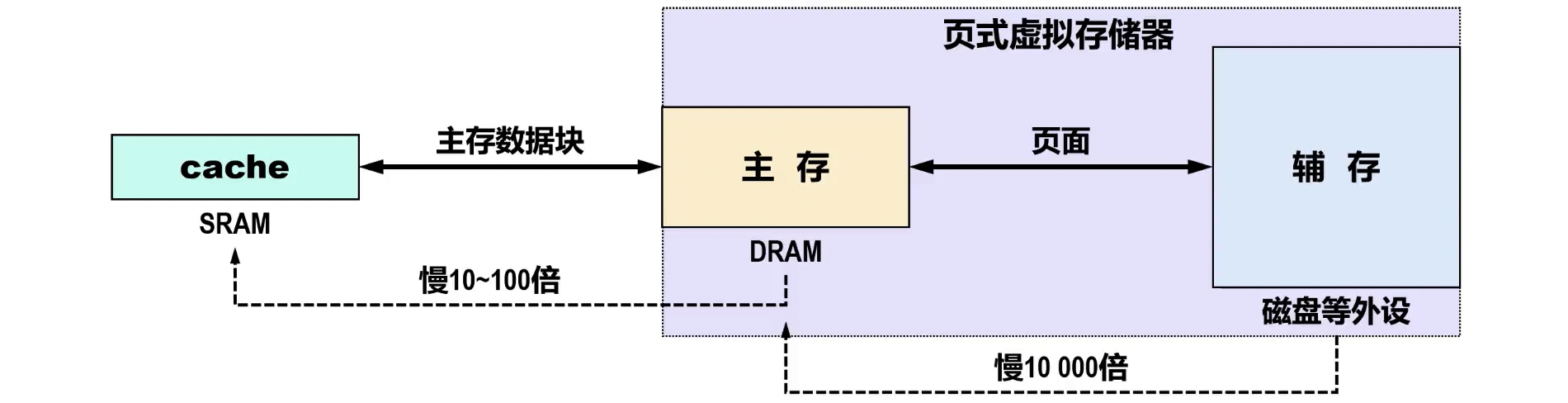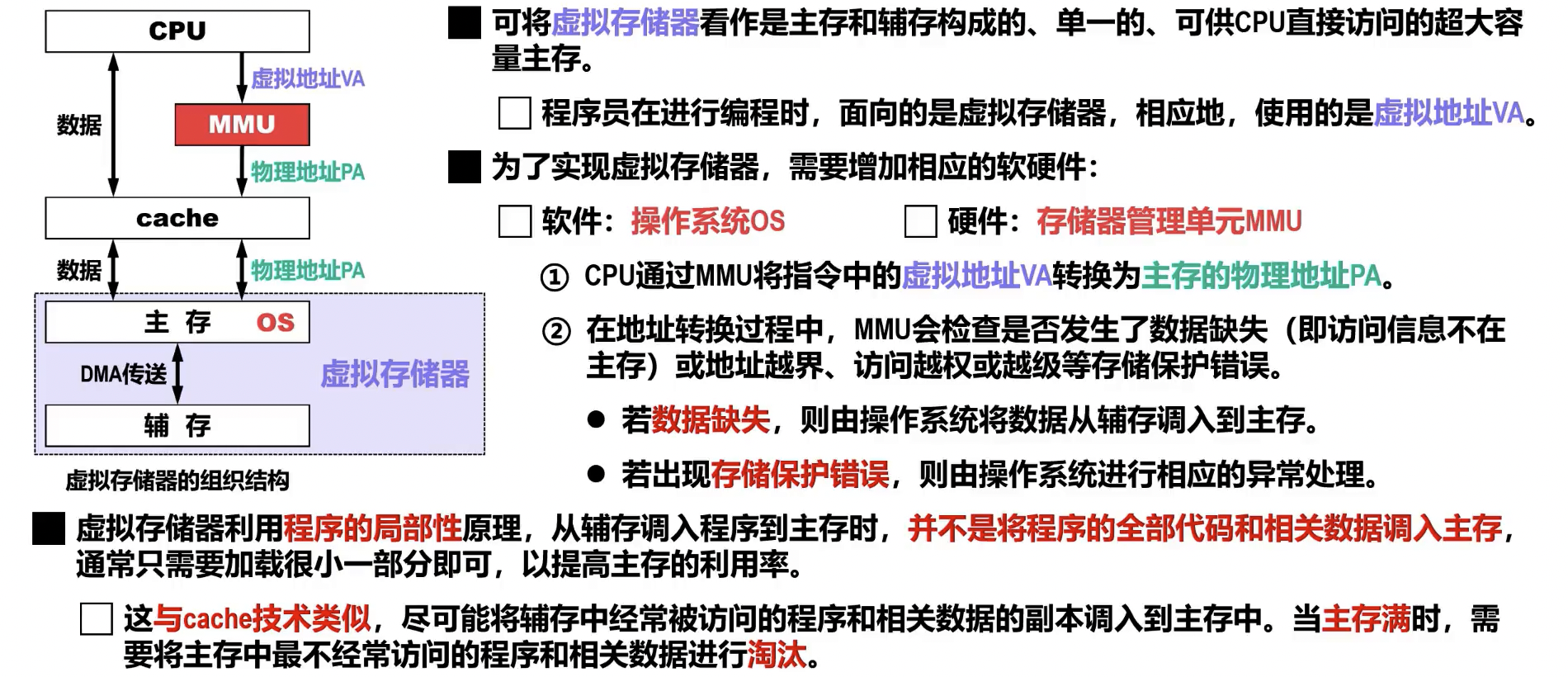 虚拟存储器由操作系统和相关硬共同协作实现,涉及操作系统部分的内容(例如进程、存储器管理、虚拟地址空间、缺页处理等),会在操作系统课程中深入讨论,本课程主要介绍虚拟存储器所涉及到的硬件部分。