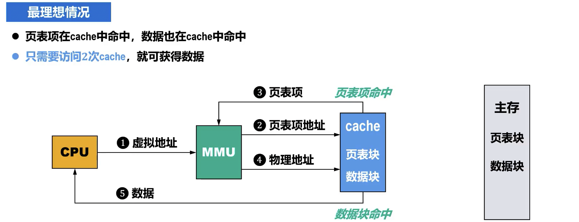 - (优化): 在查询主存中的页表之前,系统会先检查 Cache 中是否缓存了该页表项。