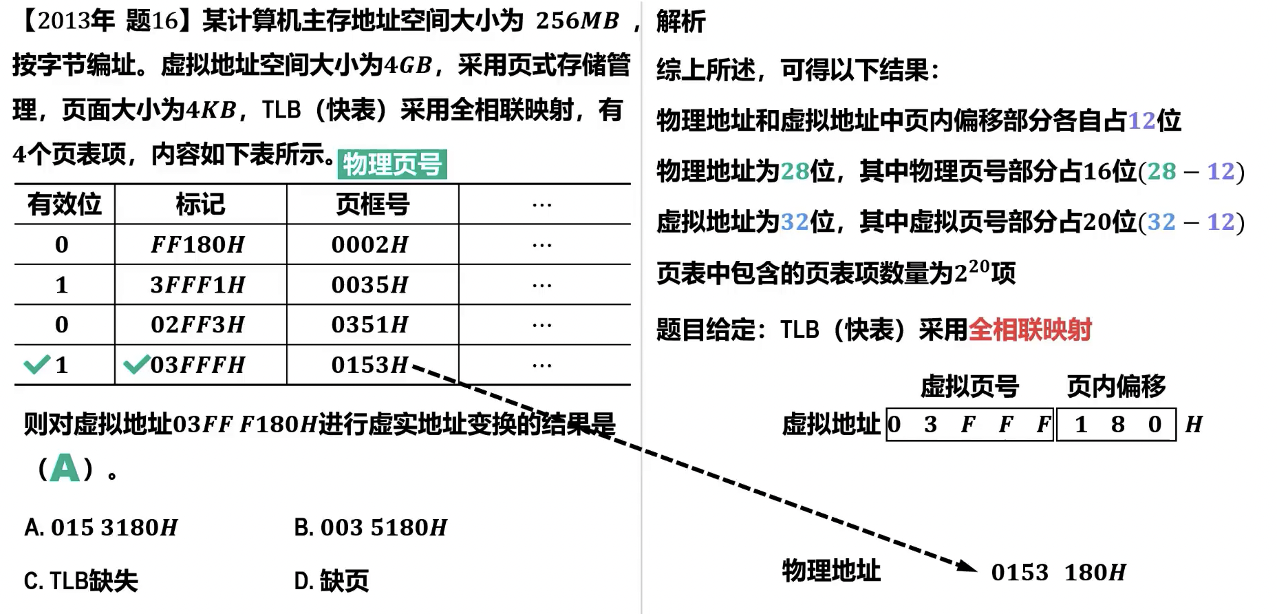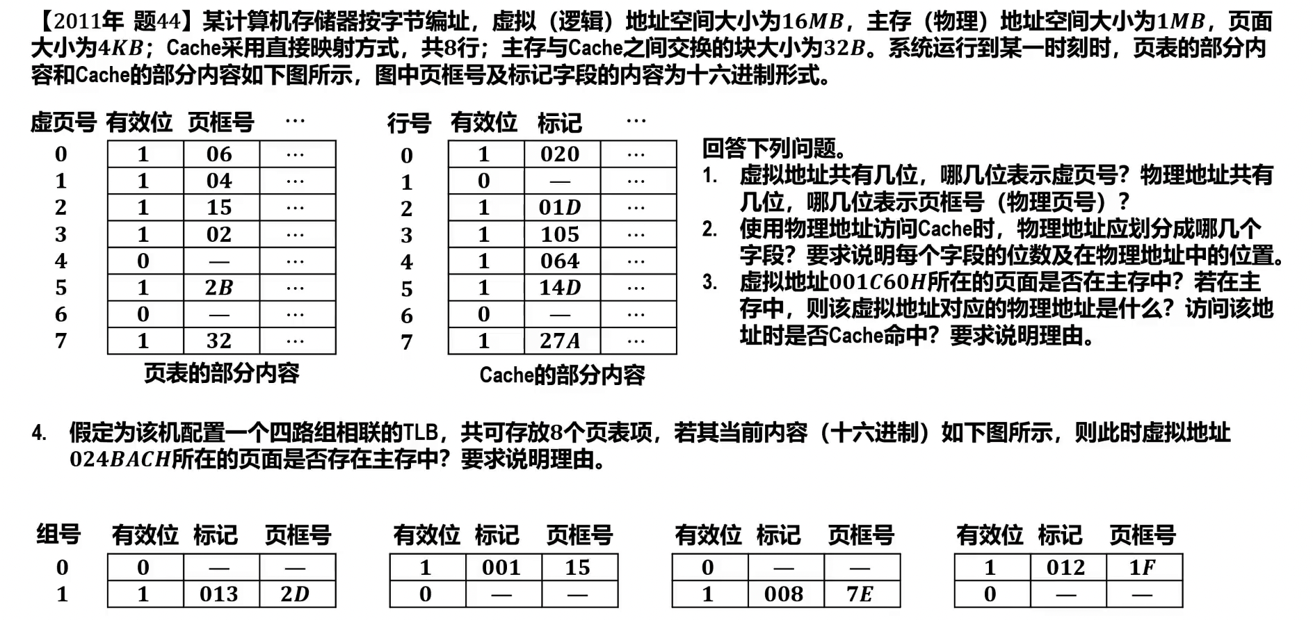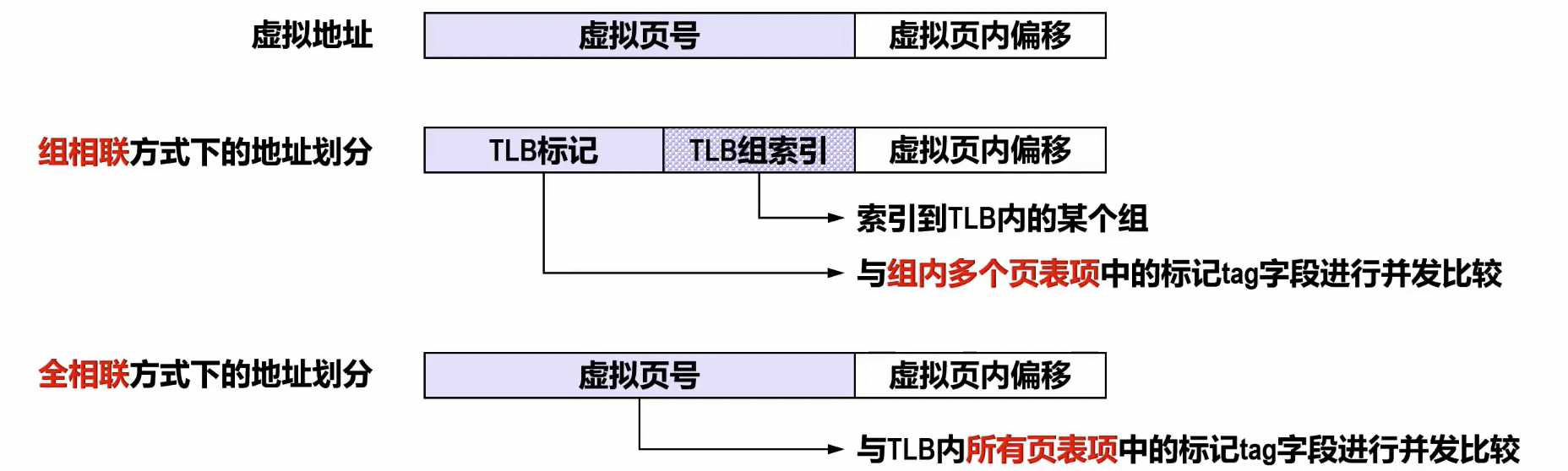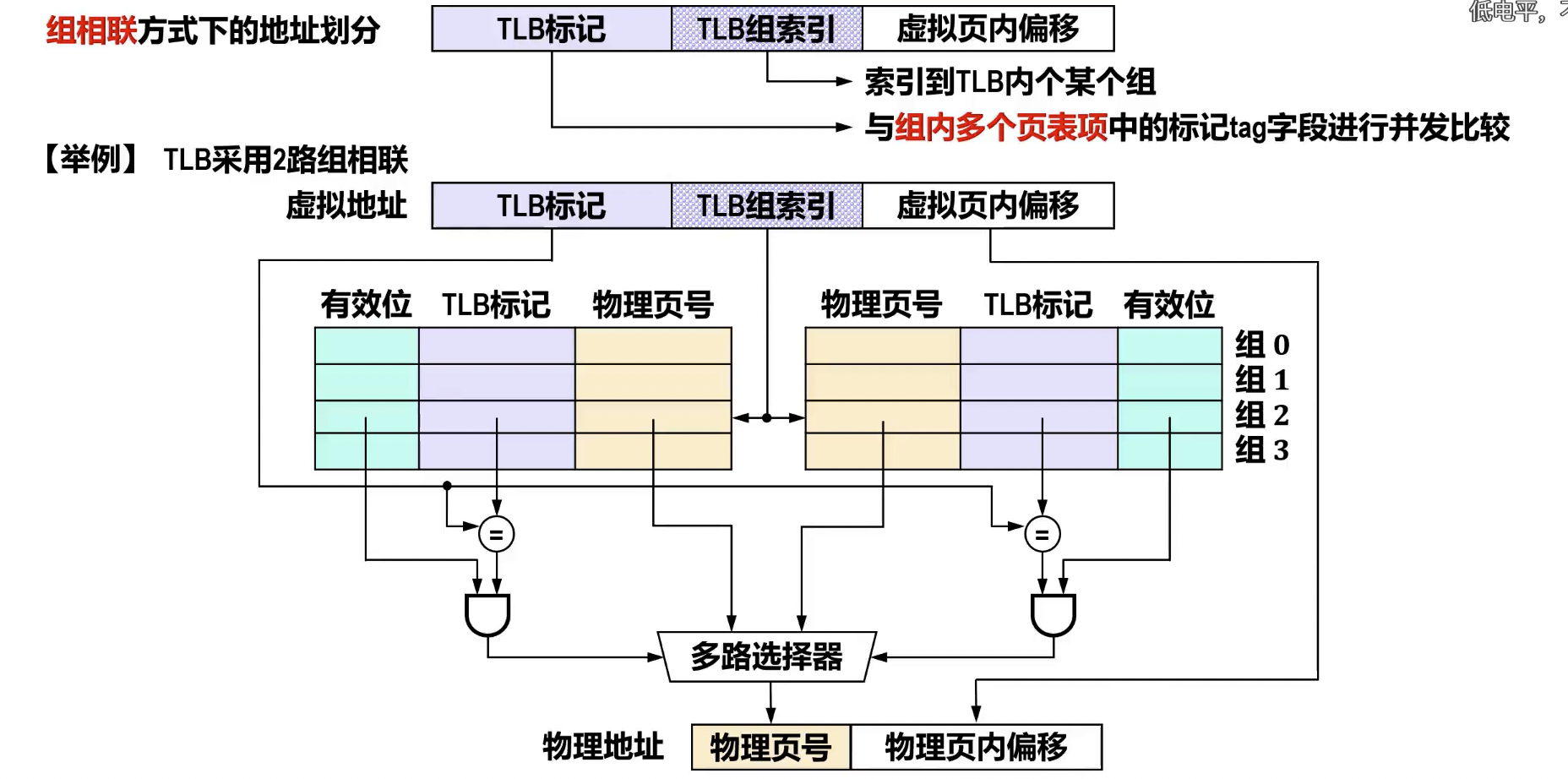 - 为了提高查找速度,TLB 一般采用全相联或组相联方式,出现 TLB 缺失时常采用 随机替换算法。