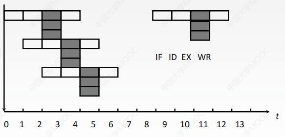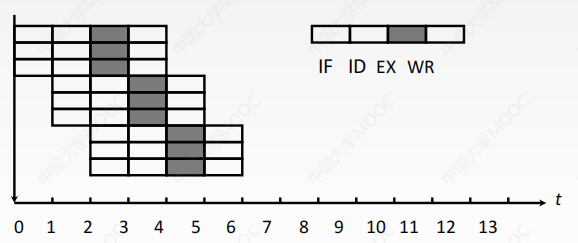 - m 段流水线在第 m 个时钟周期后,每个时钟周期都可完成一条指令