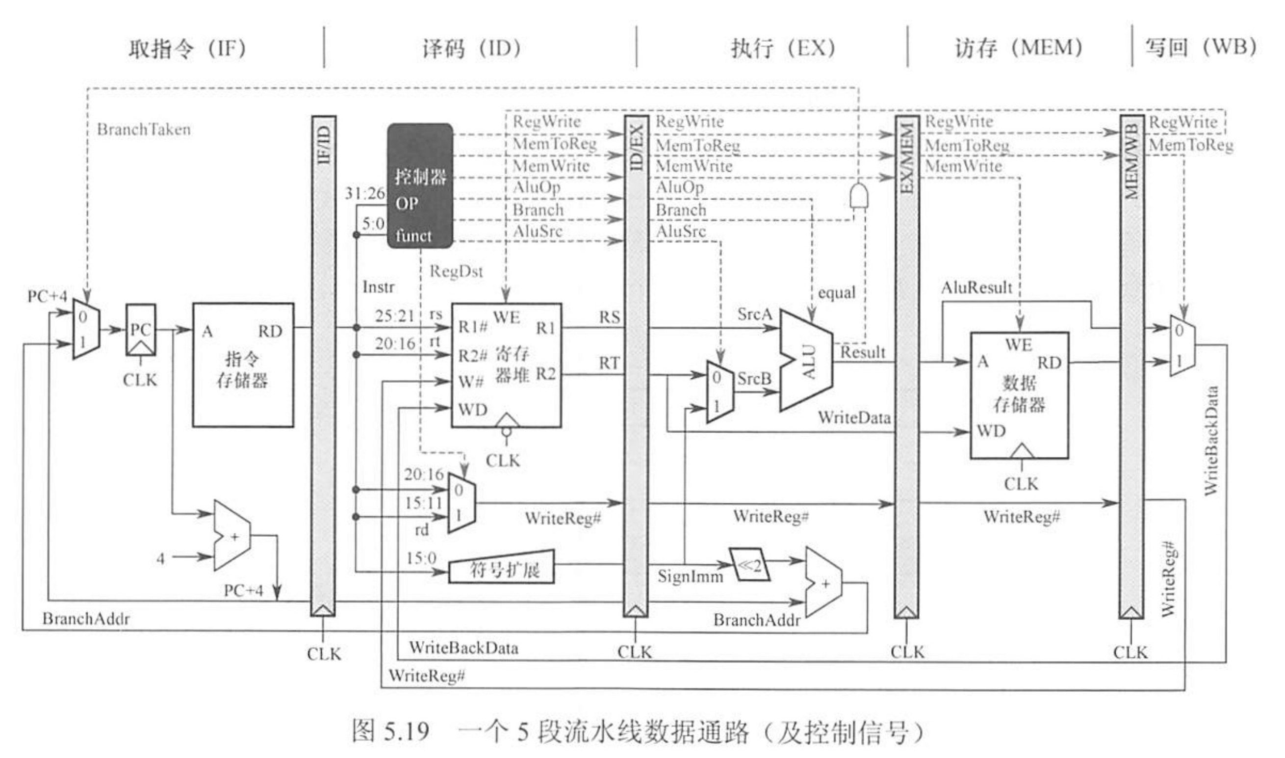 - 译码/读寄存器(ID):操作控制器对指令进行译码,同时从寄存器堆中读取操作数