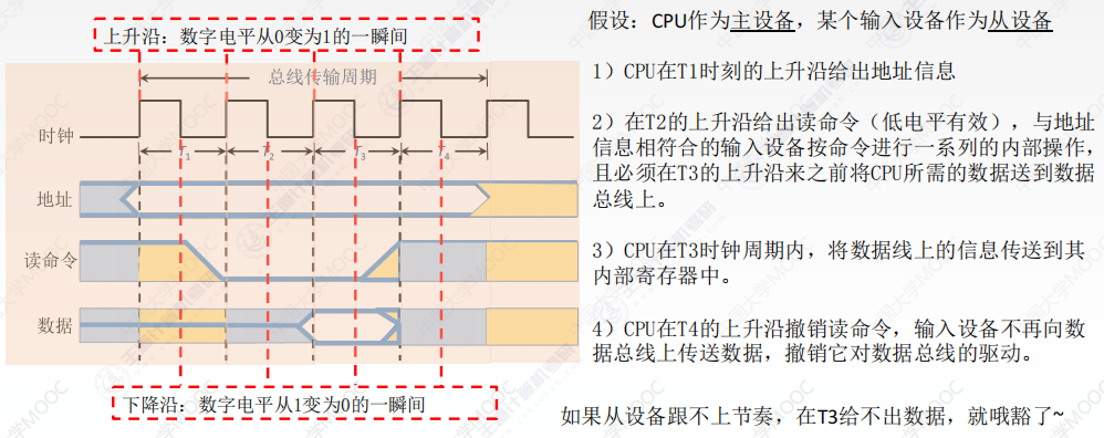 • 主从设备属于强制性同步,即总线周期固定,由最慢设备的存取时间决定。