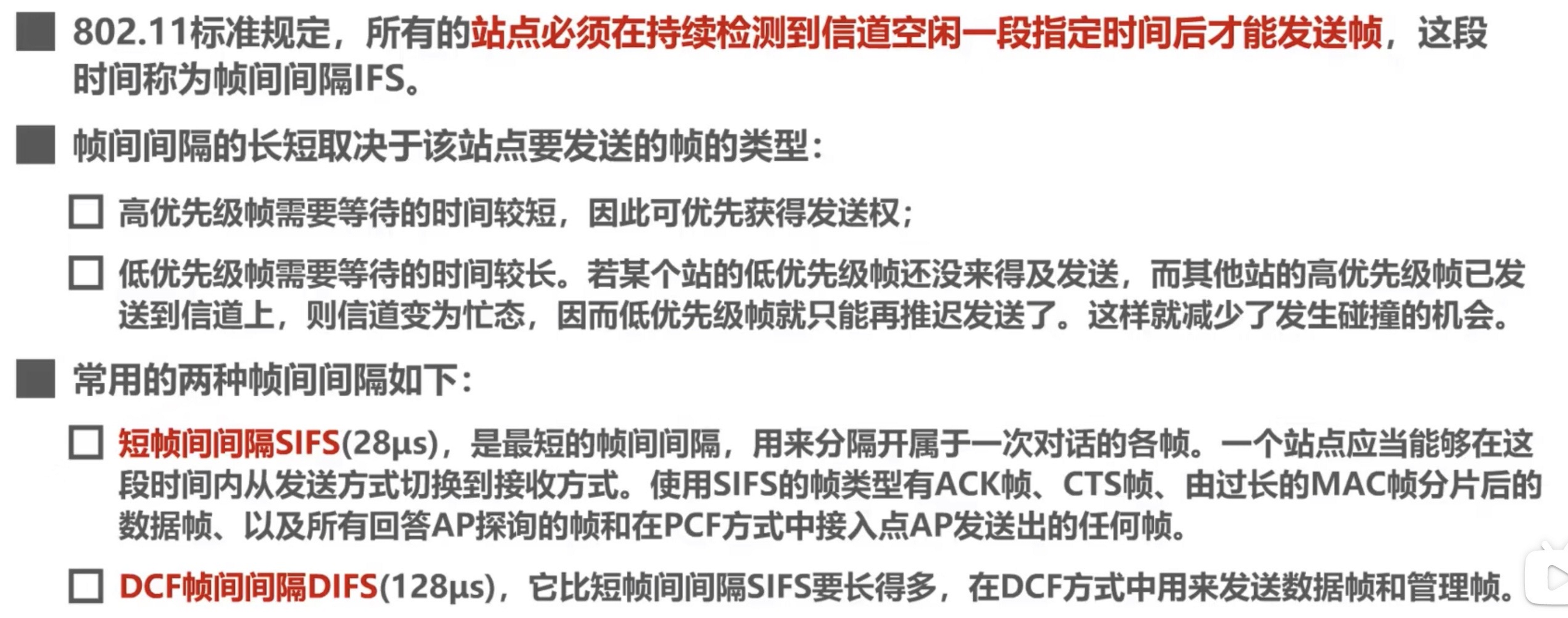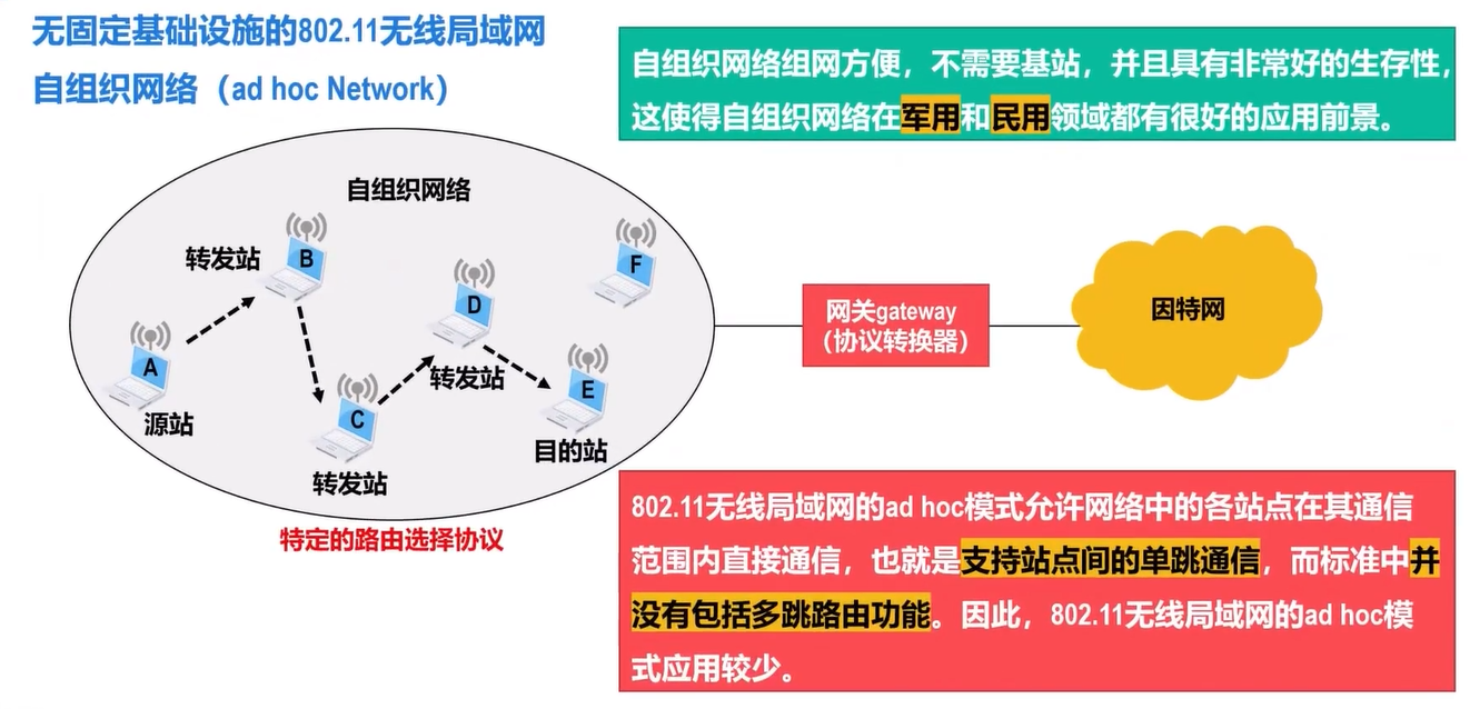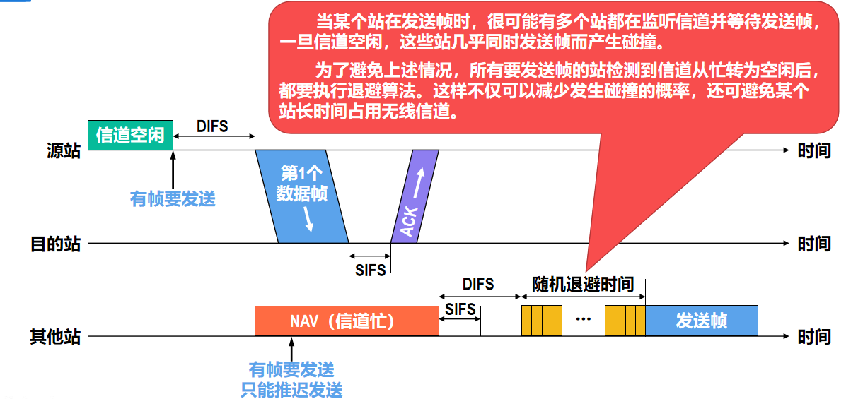 - 无线局域网使用 CSMA/CA 协议