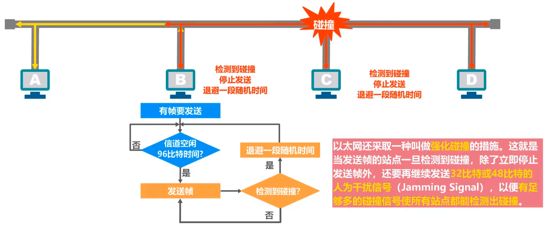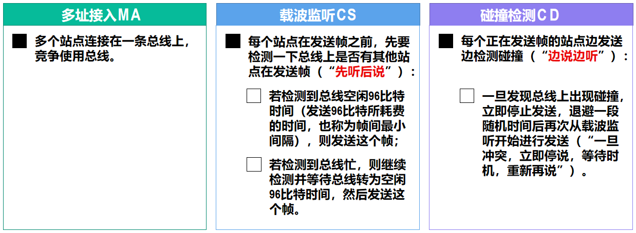 - 共享式以太网:必然产生冲突