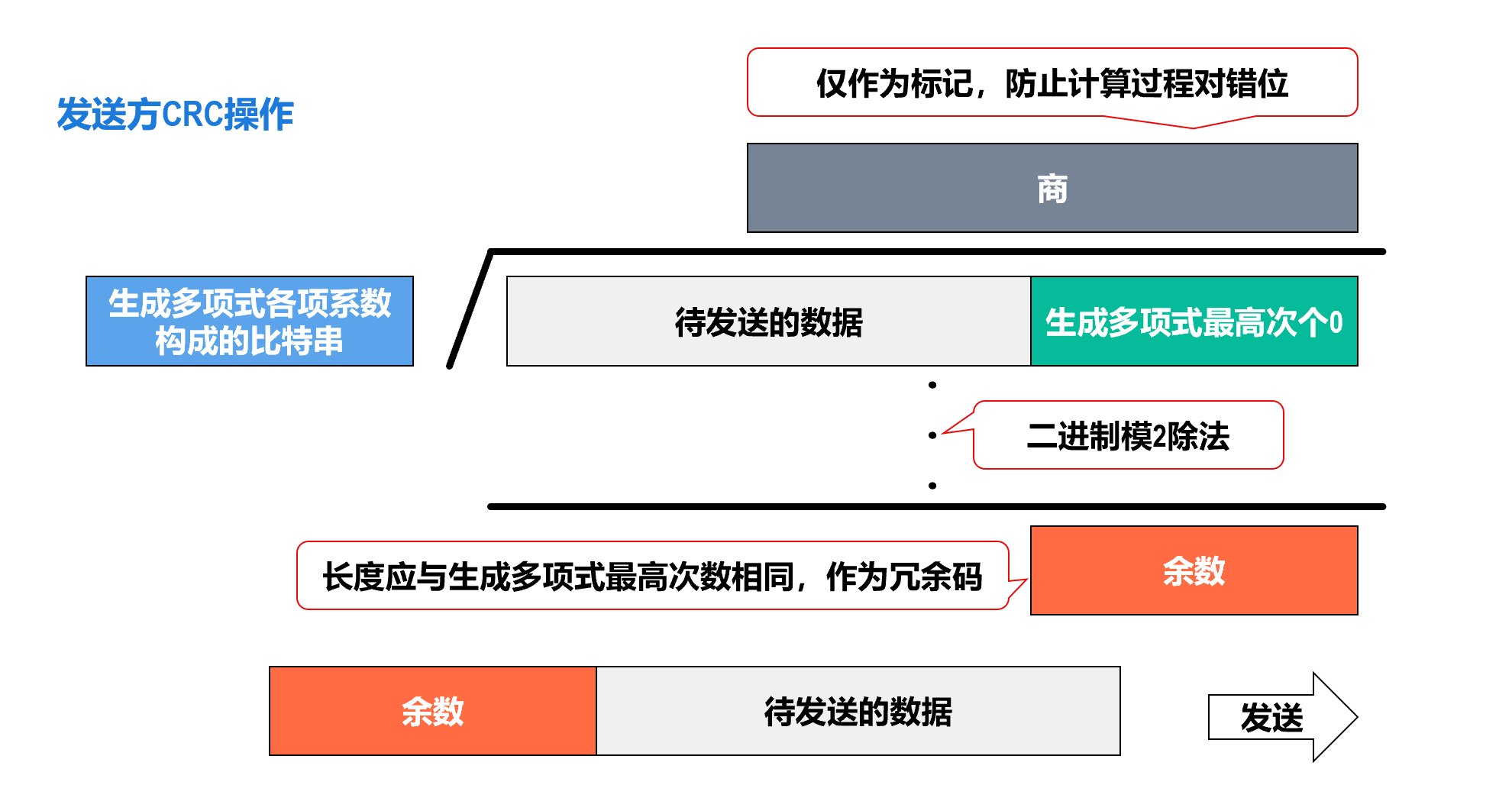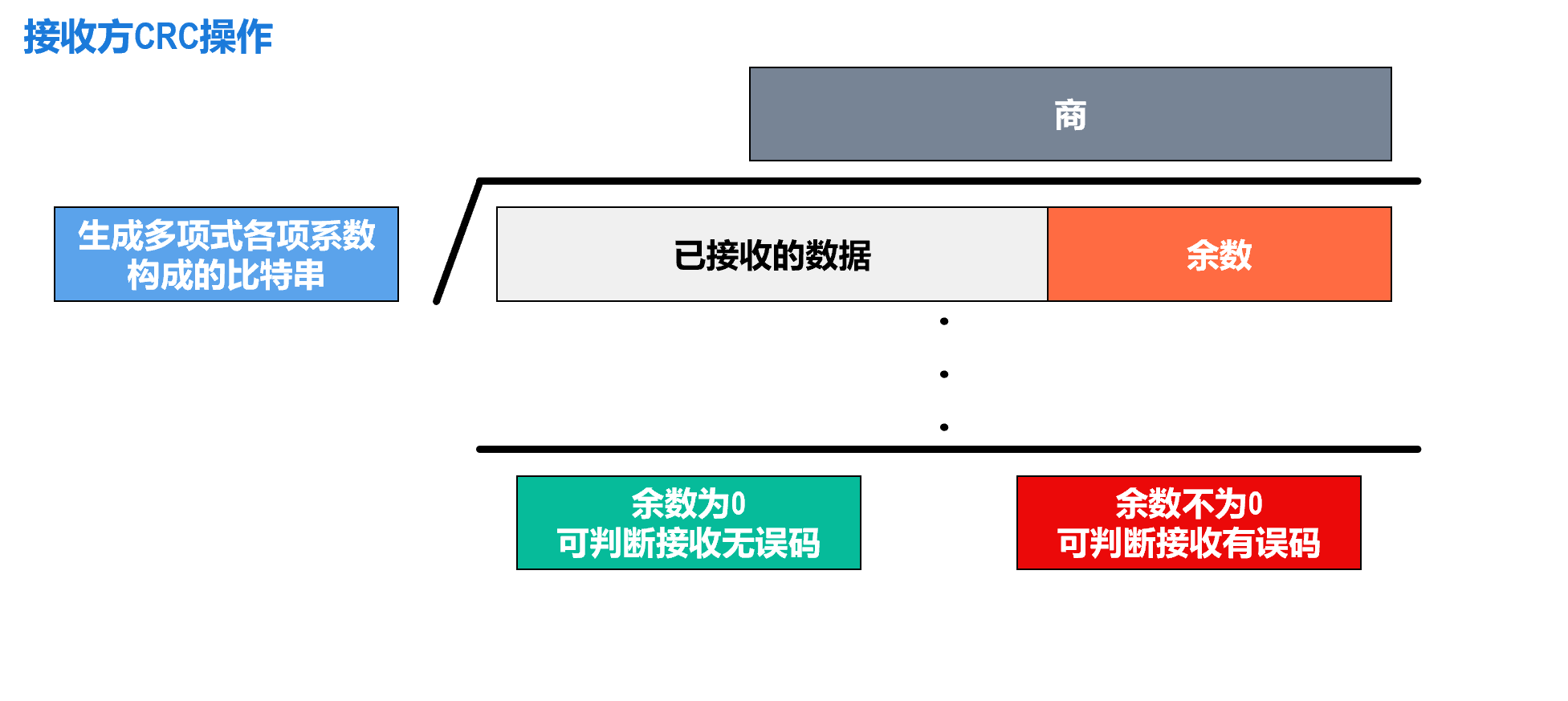 - 接收方根据发送方添加在帧尾部中的检错码,可以检测出帧是否出现了误码