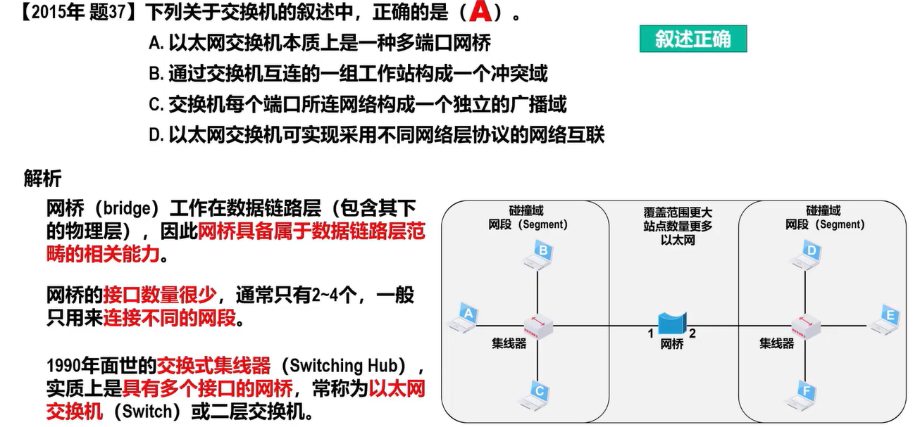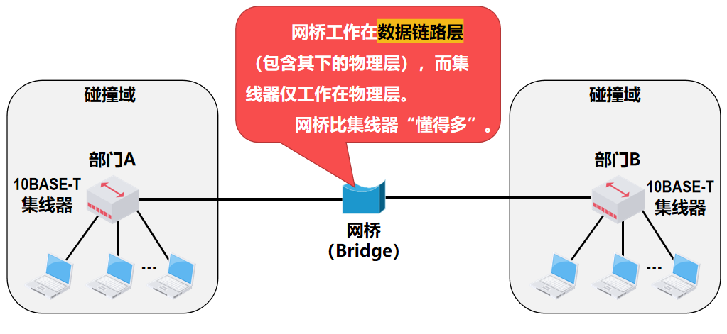 - 网桥在数据链路层扩展以太网: