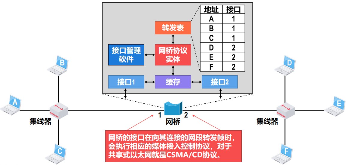转发表是网桥转发帧的依据:记录各个主机的 MAC 地址与自己各接口的对应关系