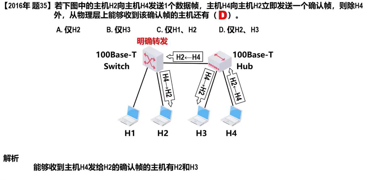 - 共享式以太网,集线器只工作在物理层: