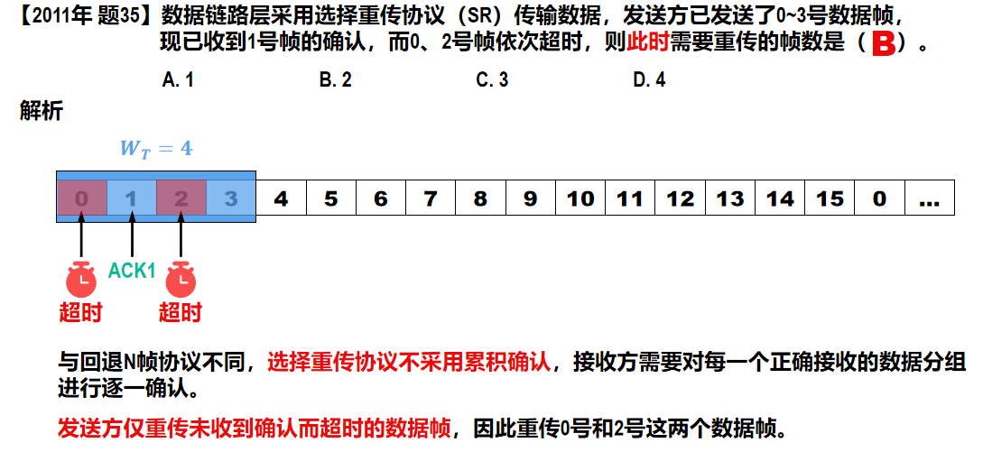 - 源主机在规定时间未收到确定信号,就重传丢失帧