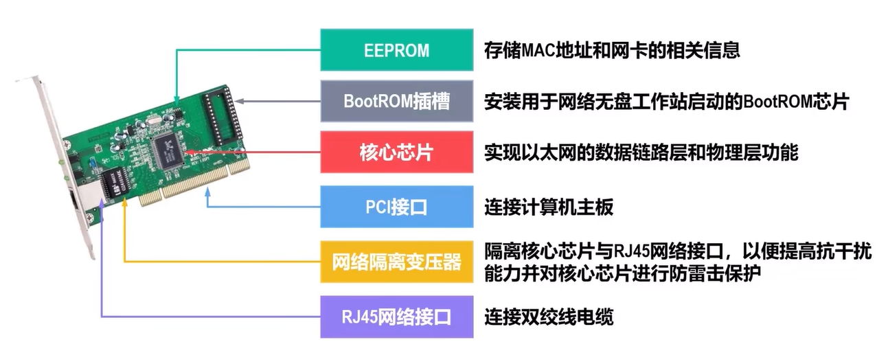 - 一般网卡包含物理层和数据链路层的功能