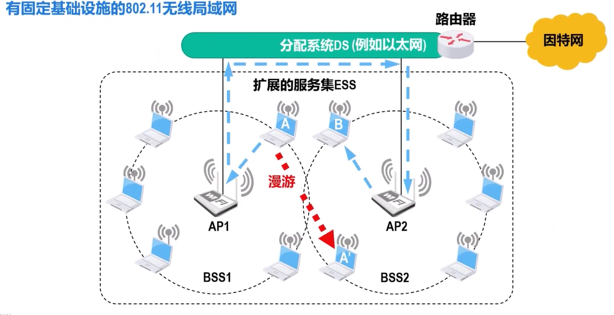 - 交换式以太网:交换机能实现多对接口的高速并行交换,不会冲突