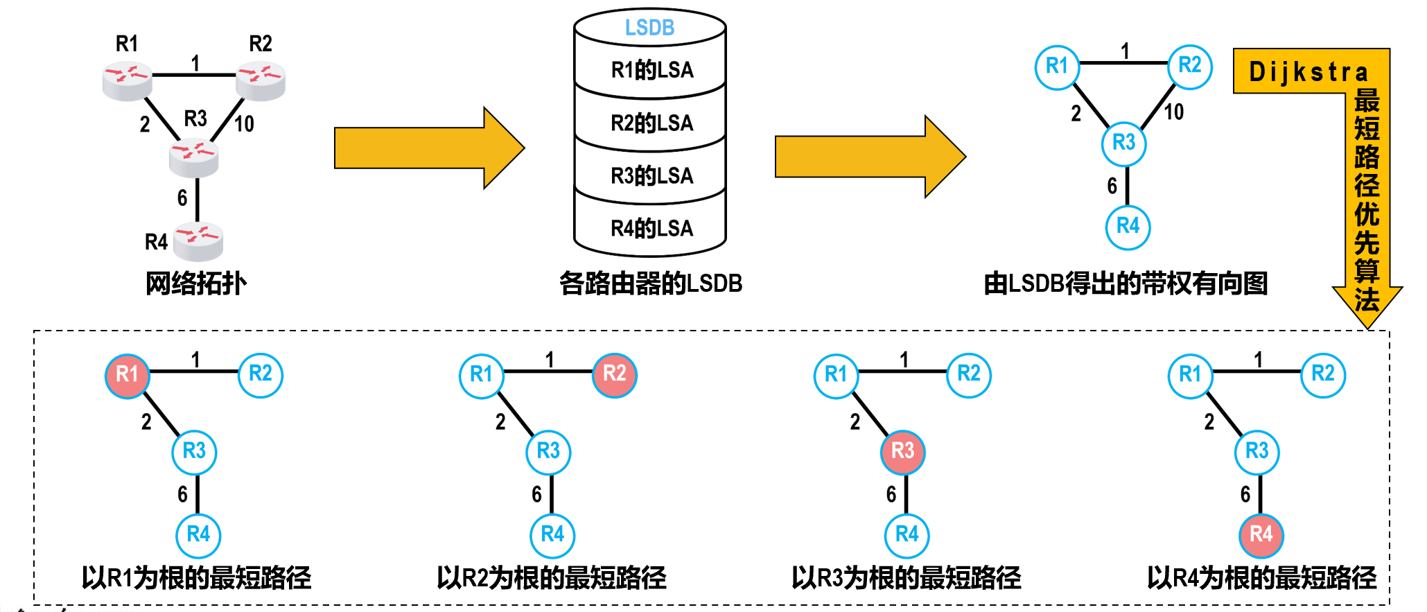 - 掌握各主机和整个网路的状态,为每个分组计算出最佳路由