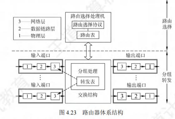 - 路由器的端口中都有物理层、数据链路层和网络层的处理模块
