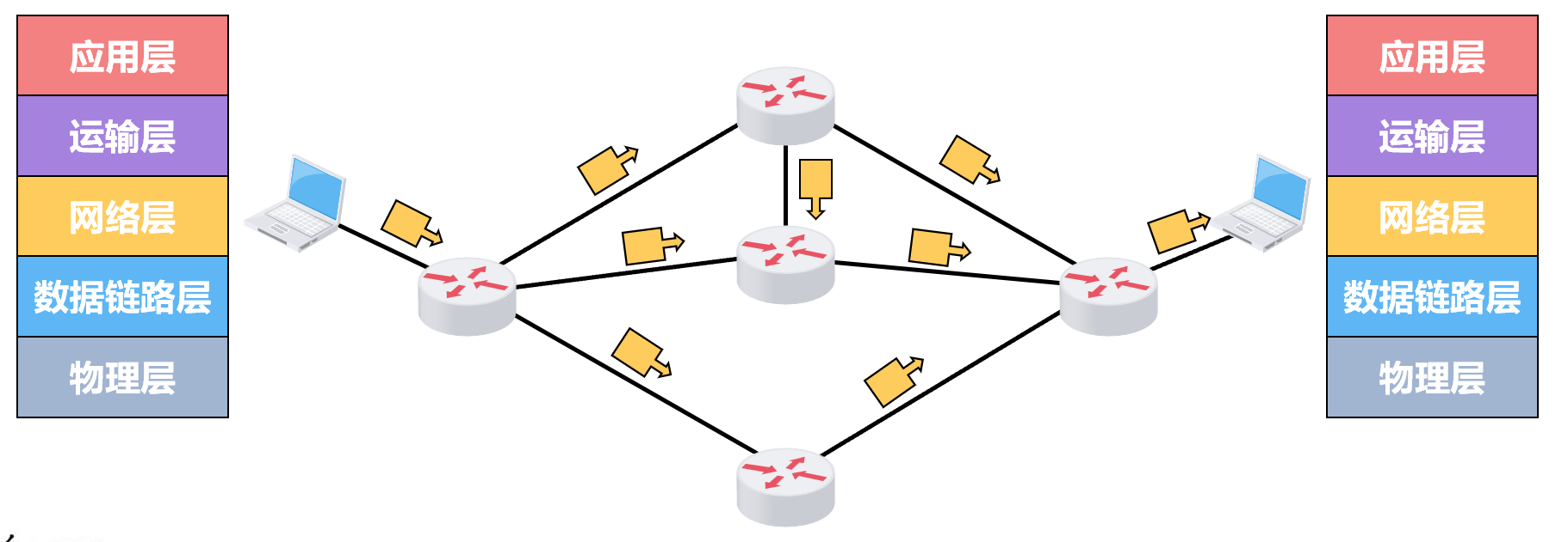 - 主要任务:将分组从源主机经过多个网络和多段链路传输到目的主机【分组转发和路由选择】