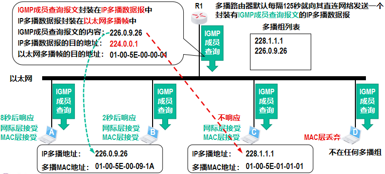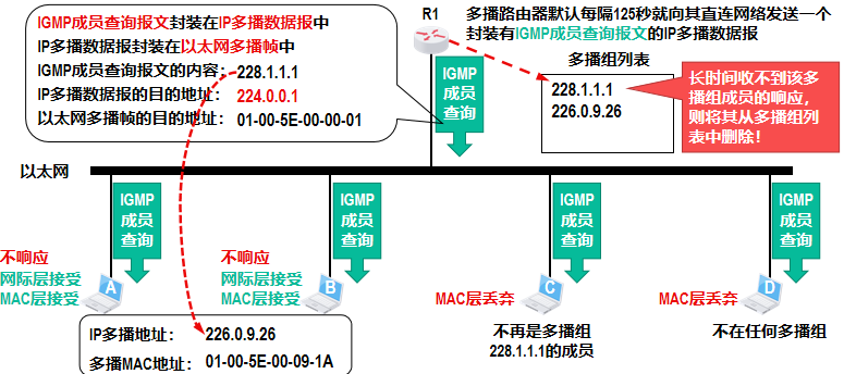 - 之后,在多播路由器所直连的局域网内,多播路由器通过硬件多播,将 IP 多播数据报发送给该多播组的所有成员